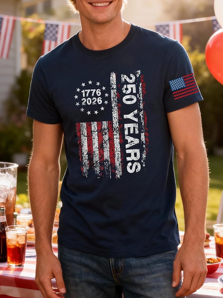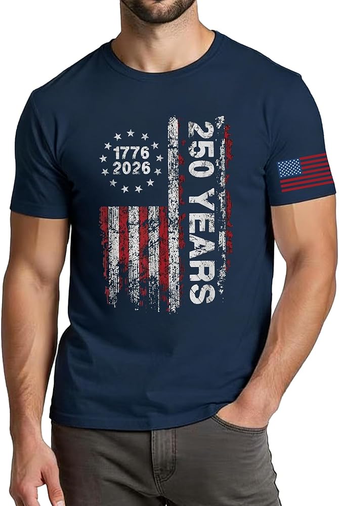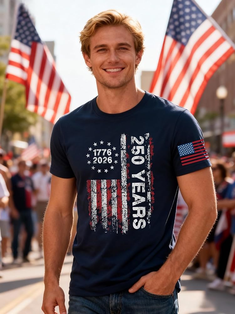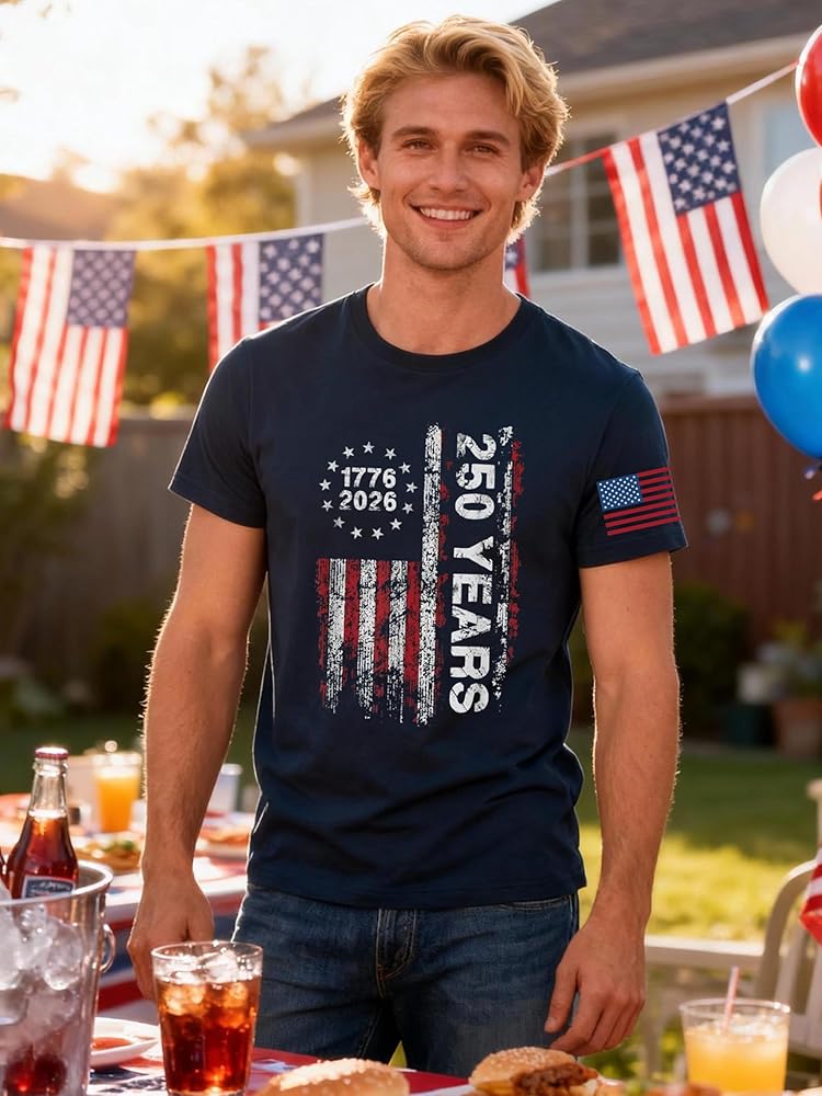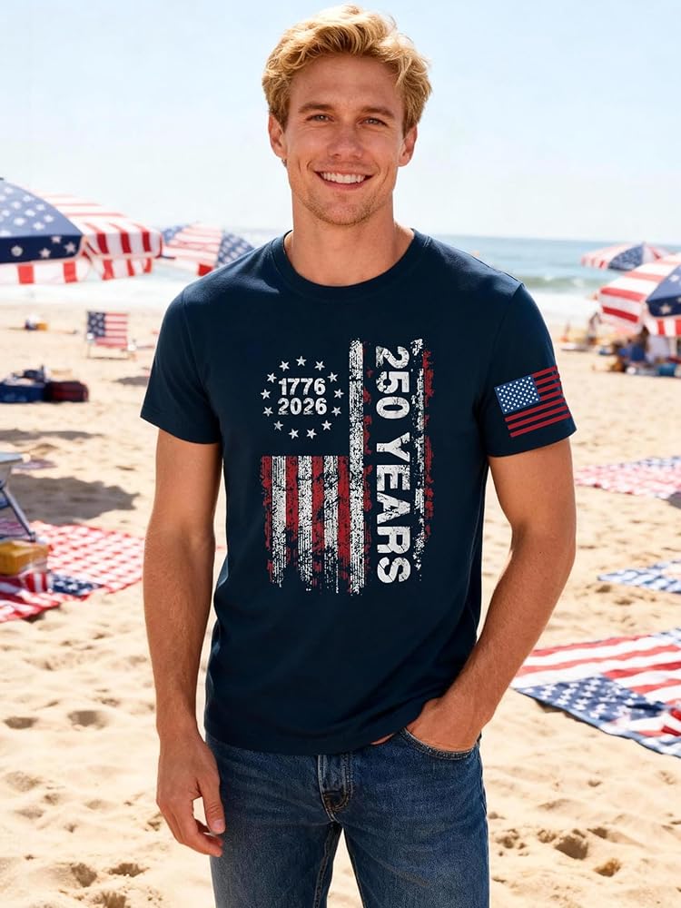 Celebrate a historic milestone with this exclusive Semiquincentennial design. Featuring bold American imagery—crossed flags, distressed "1776-2026" graphics, and patriotic typography—this shirt honors 250 years of American independence and heritage. It is the ultimate way to show your pride in 2026.