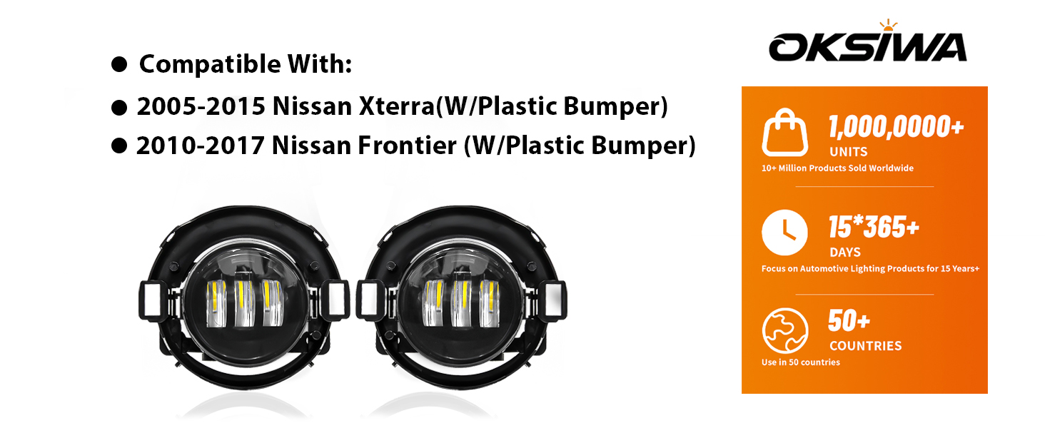 • إعداد السيارة: مجموعات مصابيح الضباب لـ 2010-2017 Frontier/ 2005-2015 Xterra (تناسب فقط المصد البلاستيكي)، مما يمنح سيارتك مظهرًا جديدًا تمامًا. يرجى التأكد من ملاءمة السيارة قبل الطلب. بما في ذلك سرج أسلاك الضباب