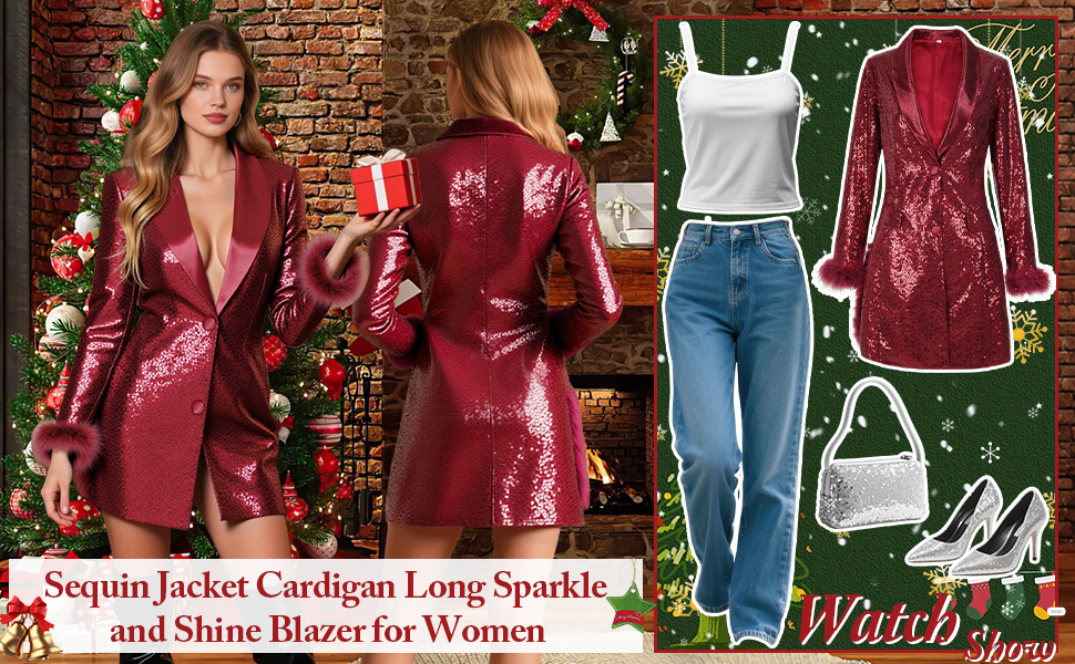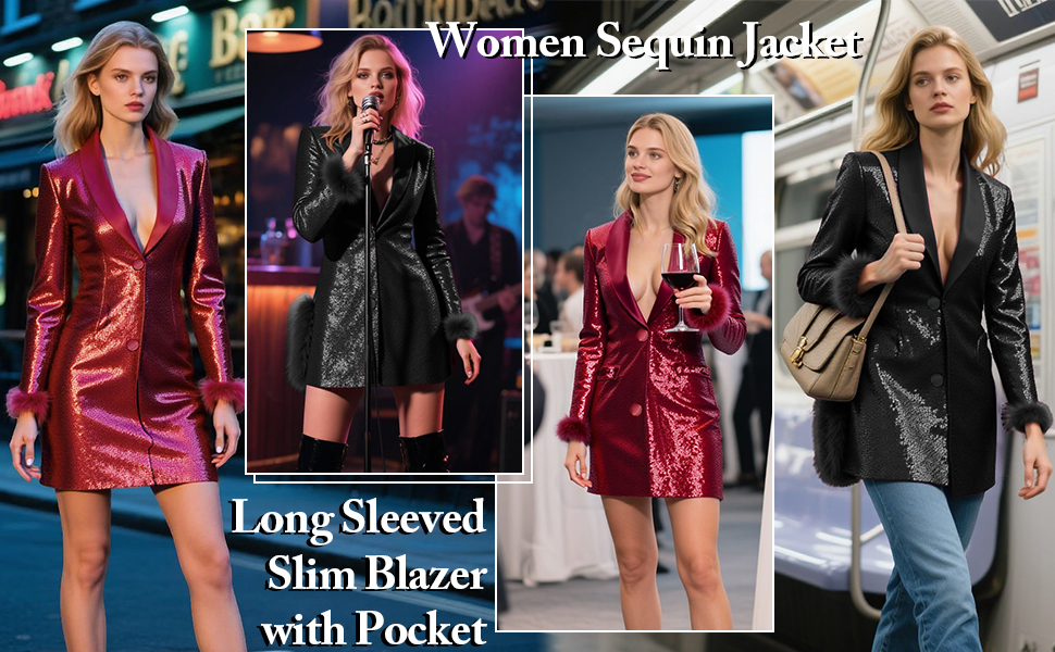 Matching: This long sequin jacket is easy to match, just pair it with accessories such as high heels and necklaces to easily attend various occasions or daily trips.