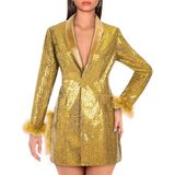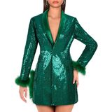 Features: Sparkling sequins, suit jacket silhouette, lapel, long sleeves, open front, fully lined, two front pockets, hip length. This stunning sequin sports jacket is a gold-plated and charming fashion show.