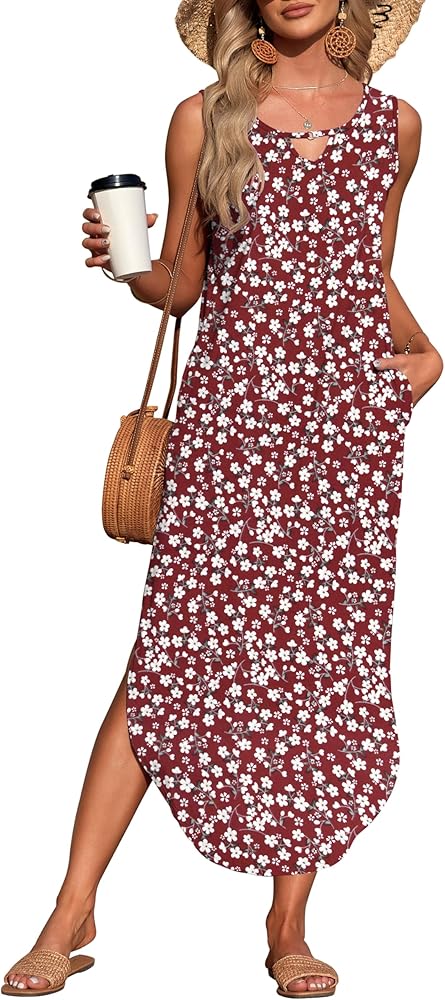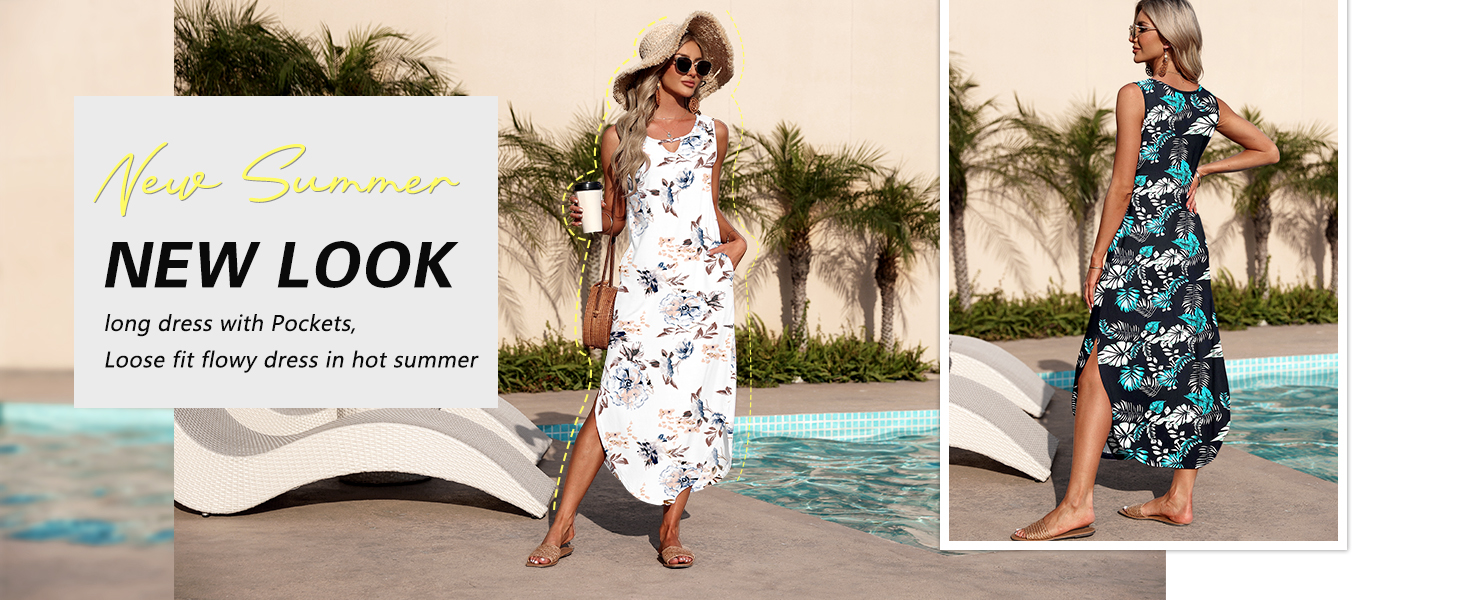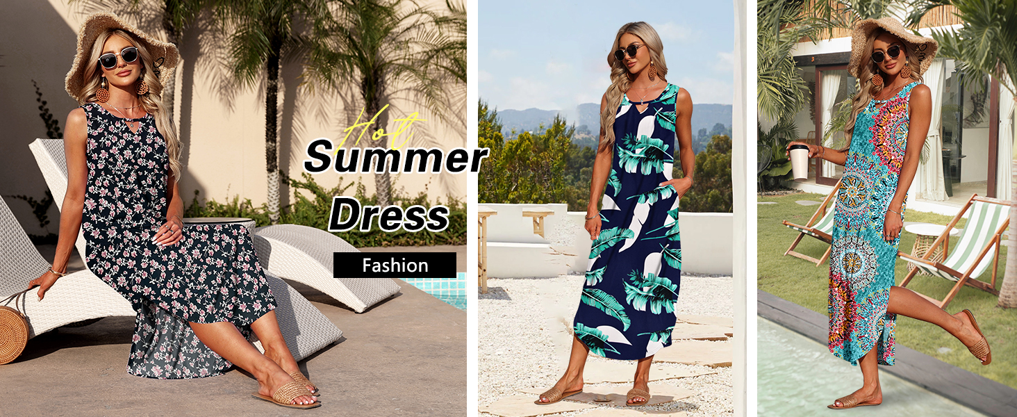 • 【تصميم فريد】تتميز فساتين الصيف النسائية برقبة دائرية، ورقبة مجوفة، بدون أكمام، فستان طويل بفتحة جانبية، حاشية متأرجحة، طول فوق الركبة، فستان فضفاض متوسط ​​الطول، فساتين شاطئ صيفية مع جيبين جانبيين، فستان طويل مخفي للبطن للنساء.