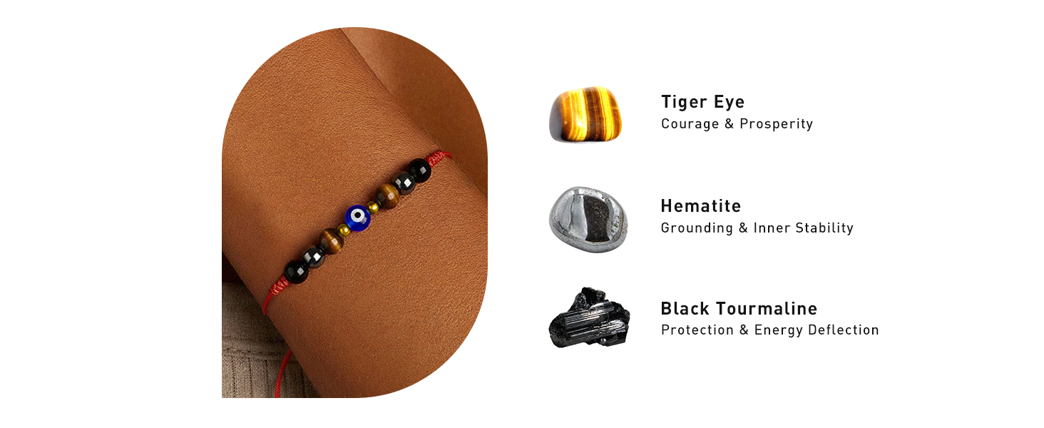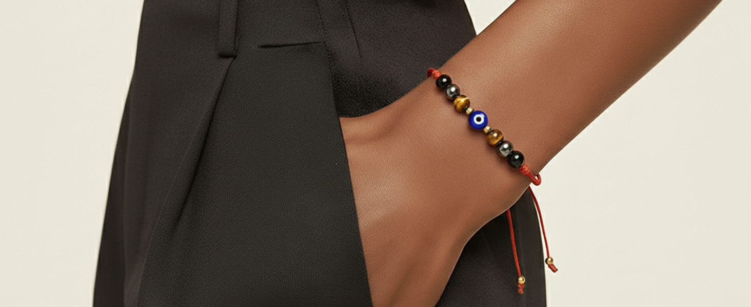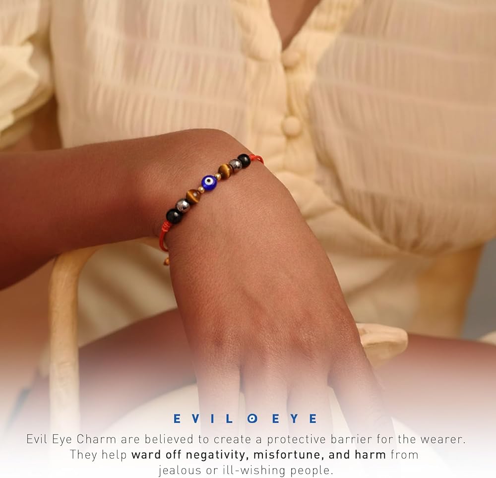 • سوار الحماية: يُعتقد أن أساور العين الشريرة تخلق حاجزًا وقائيًا لمرتديها. إنها تساعد على درء السلبية وسوء الحظ والأذى من الأشخاص الغيورين أو الذين يرغبون في سوء الحظ، بينما تكسر أيضًا الطاقة السلبية وتجذب الحظ السعيد.