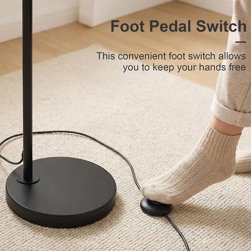 مصباح طويل مريح لمفتاح القدم: قم بتشغيل/إيقاف المصباح بسهولة بنقرة من قدمك - بدون الانحناء أو البحث عن مفاتيح. يوفر السلك الذي يبلغ طوله 6 أقدام وضعًا مرنًا، حتى تتمكن من ضبط الإضاءة المثالية بالقرب من المقاعد أو أماكن العمل أو زوايا القراءة دون التقيد بالمنافذ.