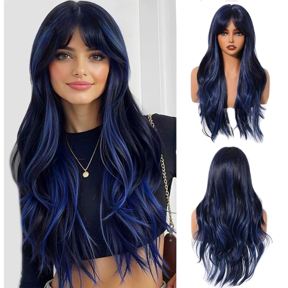 • Style: Fashion blue black wig looks realistic, natural and stylish,it's very breathable and soft, keeps the curls well, and really a nice chioce for changing a new look.