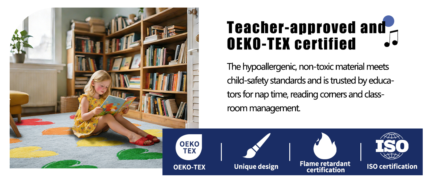 الاعتماد والسلامة: سجاد الفصل الدراسي الأولي معتمد واجتاز اختبارات صارمة لمقاومة الحريق. إنها سجادة لطيفة لمنطقة الفصل الدراسي تخفف بشكل فعال من مخاطر الحريق أثناء الاستخدام، مما يضمن بيئة آمنة.