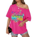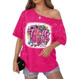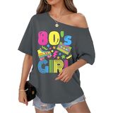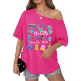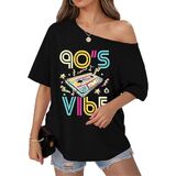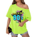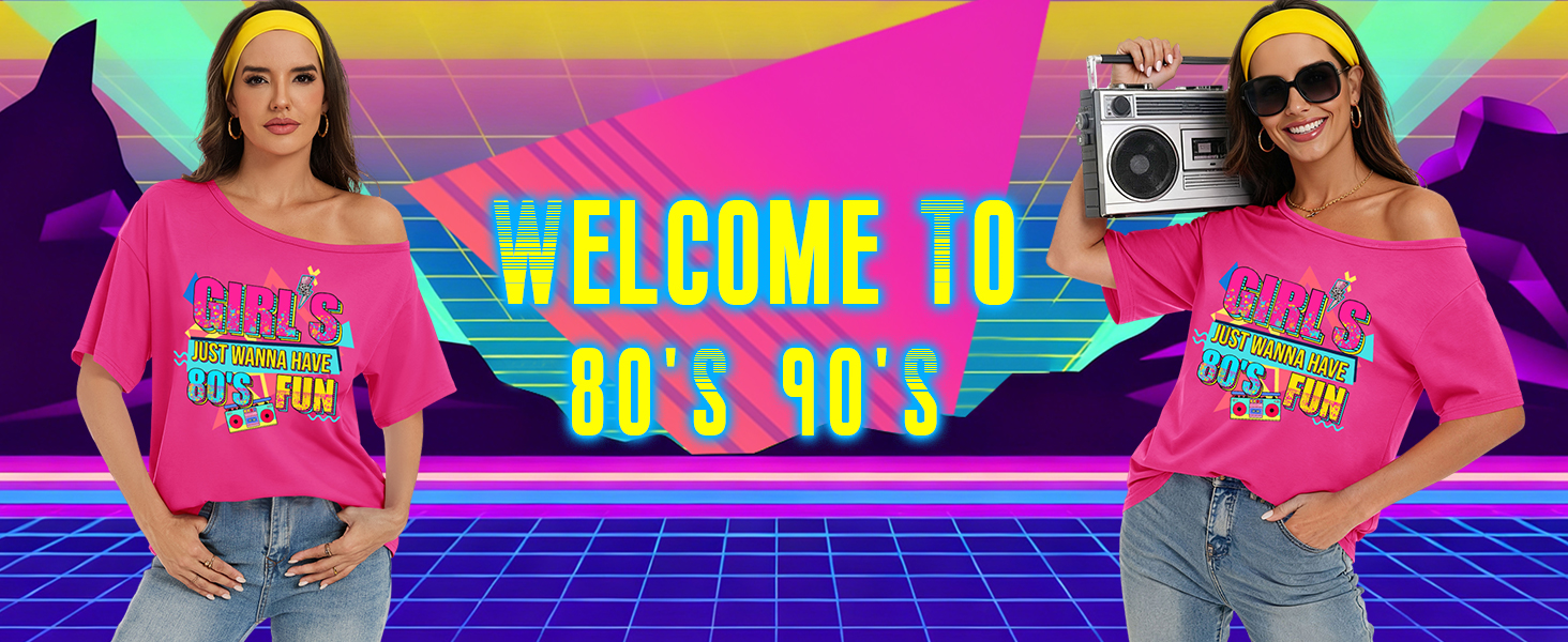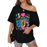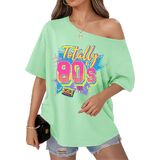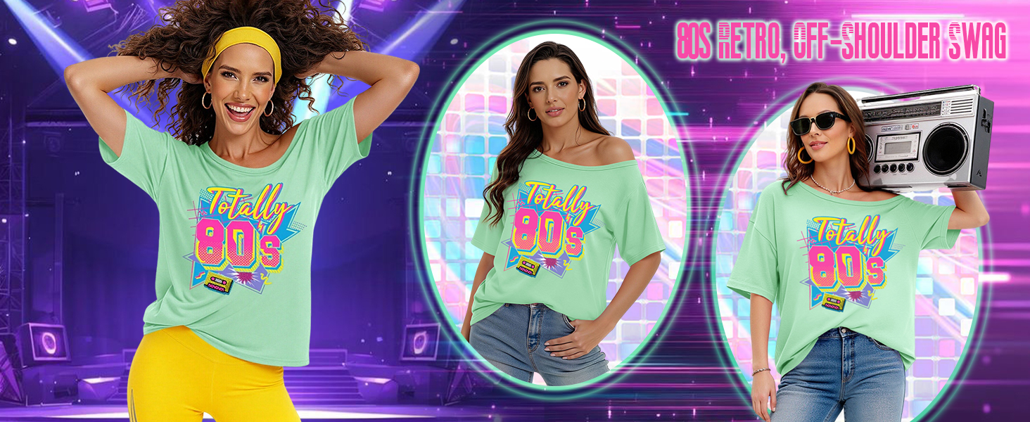 الاقتران: هذا التيشيرت بدون أكتاف يتناسب بشكل جيد مع الجينز عالي الخصر أو التنانير الجلدية أو السراويل الضيقة أو السراويل القصيرة لراكبي الدراجات النيون. أضف بعض الأحذية الرياضية الكبيرة والأقراط الدائرية والشعر الكبير لإكمال مظهر أزياء الثمانينيات أو التسعينيات