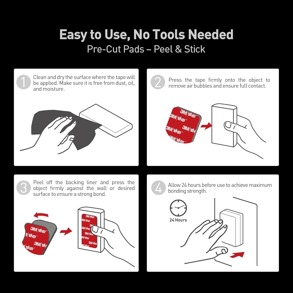 EXACT SIZE & IMPORTANT TIPS: Each 0.062" (1.6 mm) thick pad is designed for flat surfaces and can be trimmed for custom bases, though not recommended for textured dashboards. For a perfect bond: first, clean and dry the surface. If issues persist on texture, use an adhesion promoter. Apply the pad to your object (warming the adhesive if cold), let it cure for a few hours, then firmly press the object onto the final surface for best results.