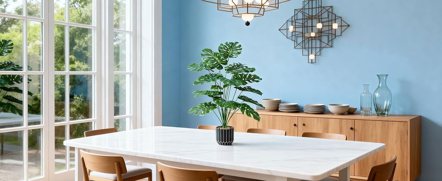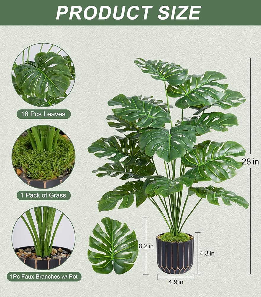 وحش صناعي حقيقي مقاس 28 بوصة: يتميز بتصميم أوراق مقسمة نابض بالحياة مع درجات خضراء طبيعية وملمس واقعي، يحاكي تمامًا الوحوش الحقيقية. يضفي هذا النبات الاستوائي الصناعي النابض بالحياة خضرة استوائية عصرية ومظهرًا زخرفيًا راقيًا لأي مساحة داخلية.