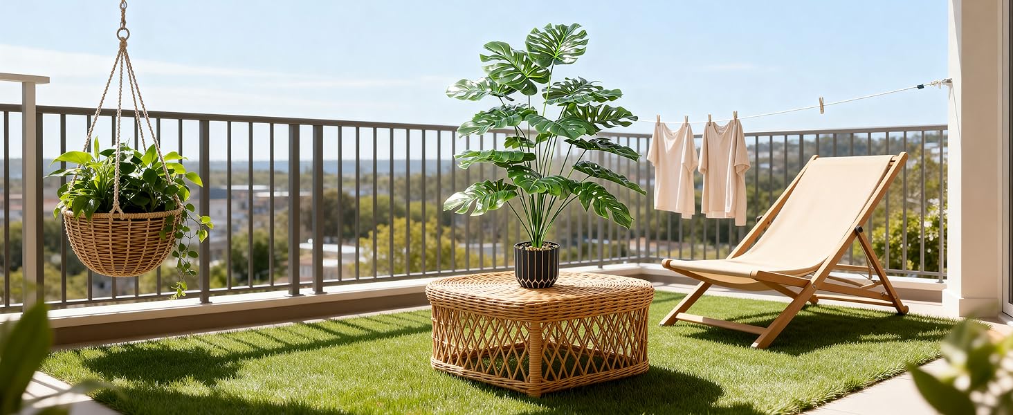 🏡 قاعدة ثابتة مع نبات زخرفي: مجهزة بوعاء مدمج قوي (ارتفاع 4.3 بوصة × عرض 4.9 بوصة) مع مركز جاذبية ثابت، تقف هذه الوحش الاصطناعي مقاس 28 بوصة في وضع مستقيم دون انقلاب، ولا حاجة إلى قاعدة إضافية أو تركيب معقد.