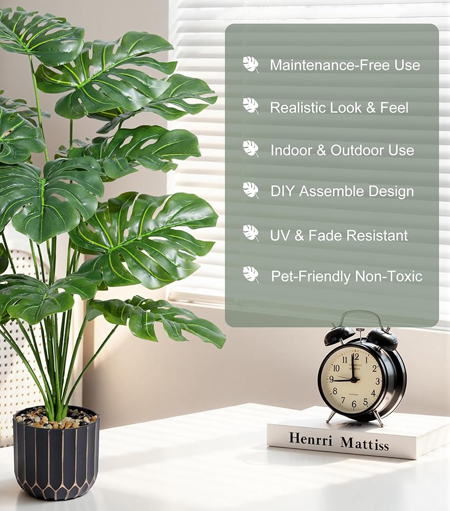✅ متينة للغاية ومقاومة للبهتان: مصنوعة من مواد فاخرة صديقة للبيئة، هذه الوحش المزيفة مضادة للبهتان ولا تذبل ولا تساقط. إنه يحافظ على نضارته وسليمته لسنوات دون تشوه، ويعمل كديكور أخضر منخفض التكلفة يدوم طويلاً للاستخدام الداخلي اليومي.