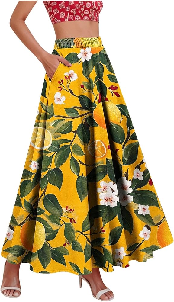 Western skirts for women,a casual maxi with a stretchy pleated band and a comfortable a-line that reaches the ankles