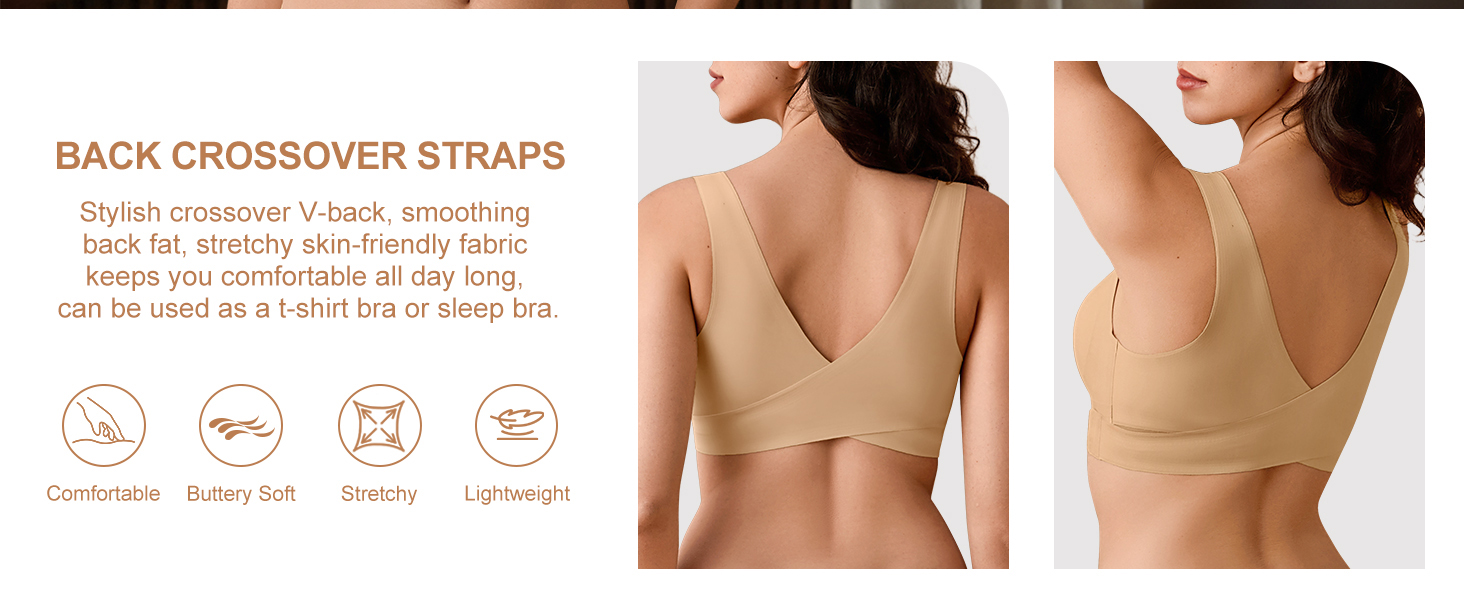 • حزام متقاطع: يتميز بتصميم متقاطع من الخلف، بدون خياطة وبدون علامات، مما يضمن مظهرًا ناعمًا تحت الملابس الضيقة. إنه متعدد الاستخدامات لأي مناسبة - العمل، الحياة اليومية، النوم، صالة الألعاب الرياضية، الحفلات