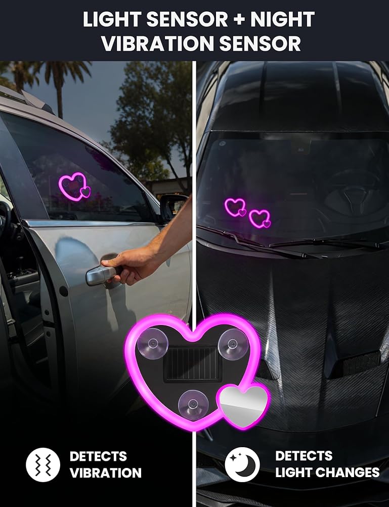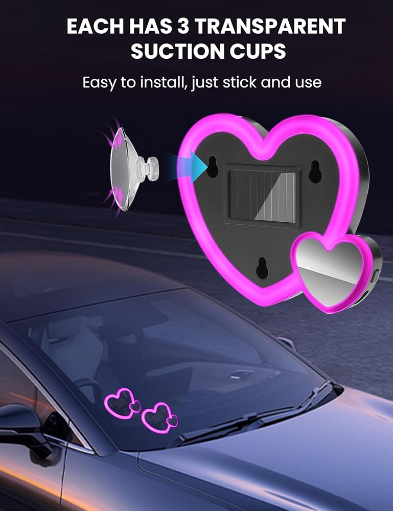 ضوء LED على شكل قلب يعمل بالطاقة الشمسية لتزيين السيارة، قطعتان من أضواء القلب المحيطة LED للسيارة الوردية، 5 أوضاع قابلة للشحن لاسلكيًا على شكل قلب ضوء نيون LED، ملحقات سيارة لطيفة، هدية رومانسية