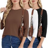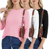 GAYHAY 3 Pack 3/4 كم طول بلايز نسائية - طاقم الرقبة تي شيرت بلوزات غير رسمية فضفاضة تناسب الربيع الصيف عطلة الملابس 2026 in Kuwait