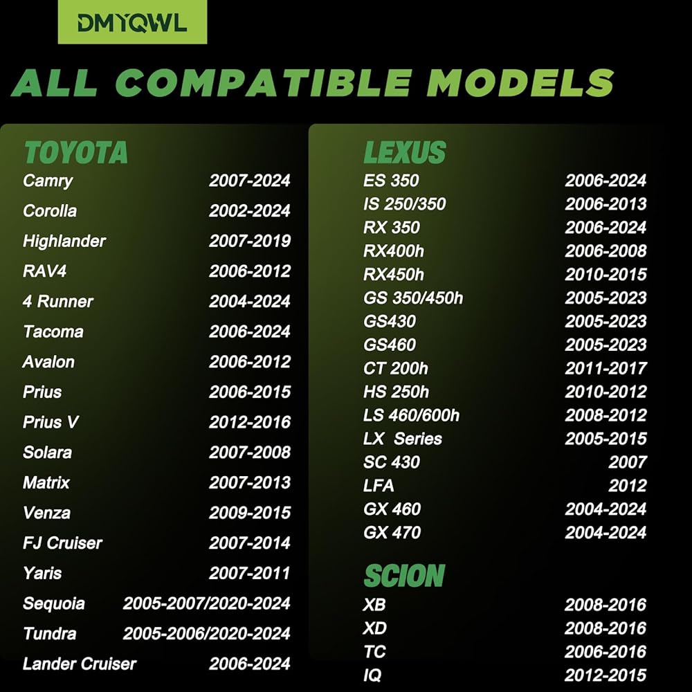 🚙 【SEE DETAILS FOR MORE MODELS & Replace Part Number】 🚚【TOYOTA】Camry(2007-2024);Corolla(2002-2024);Avalon(2006/01-2012/10);Prius(2006-2015);Prius V(2012-2016);Solara(2007-2008);Matrix(2007-2013);Venza(2009-2015);FJ Cruiser(2007-2014);Yaris(2007-2011);Sequoia(2005-2007/2020-2024);Tundra(2005-2006/2020-2024);Lander Cruiser(2006-2024); 🚚【LEXUS】ES350(2006-2024);IS250/350(2006-2013);RX350(2006-2024);RX400h(2006-2008);RX450h(2010-2015);GS350/450h(2005-2023);GS430(2005-2023);GS460(2005-2023); ⚙ 【Replace Part Number】4260706011/426070C020/ 4260733011/4260733012/PMV-107J/1017/C11A/1037/PMV-C010/PMV-C11A/PMV-G001/PMV-E005/H000.ect.