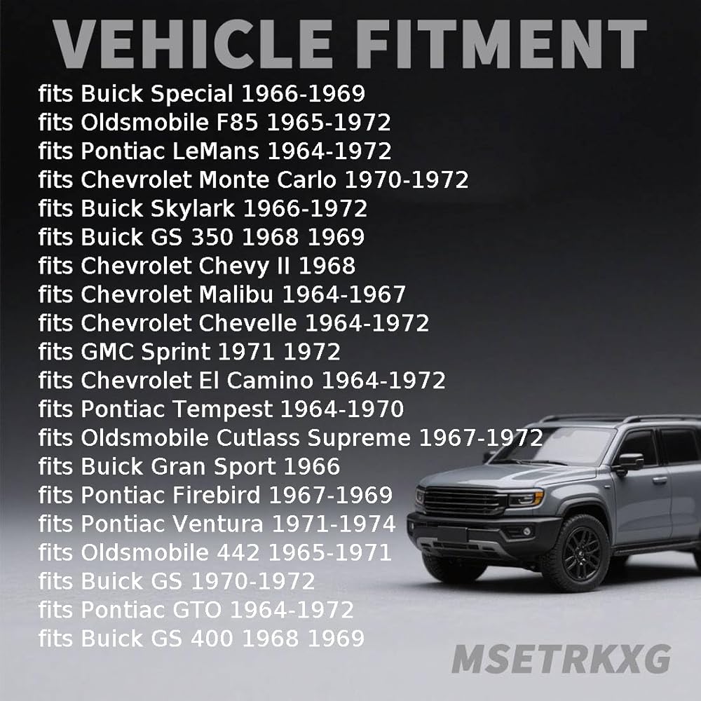 Buyer Guide: Suspension Control Arm Shaft Kit fits Buick Apollo 1973-1974 fits Buick GS 1970-1972 fits Buick GS 350 1968-1969 fits Buick GS 400 1968-1969 fits Buick GS 455 1970-1972 fits Buick Gran Sport 1966 fits Buick Skylark 1966-1972 fits Buick Special 1966-1969 fits Buick Sportwagon 1966-1971 fits Chevrolet Camaro 1967-1969 fits Chevrolet Chevelle 1964-1972 fits Chevrolet Chevy II 1968 fits Chevrolet El Camino 1964-1972 fits Chevrolet Malibu 1964-1967 fits Chevrolet Monte Carlo 1970-1972