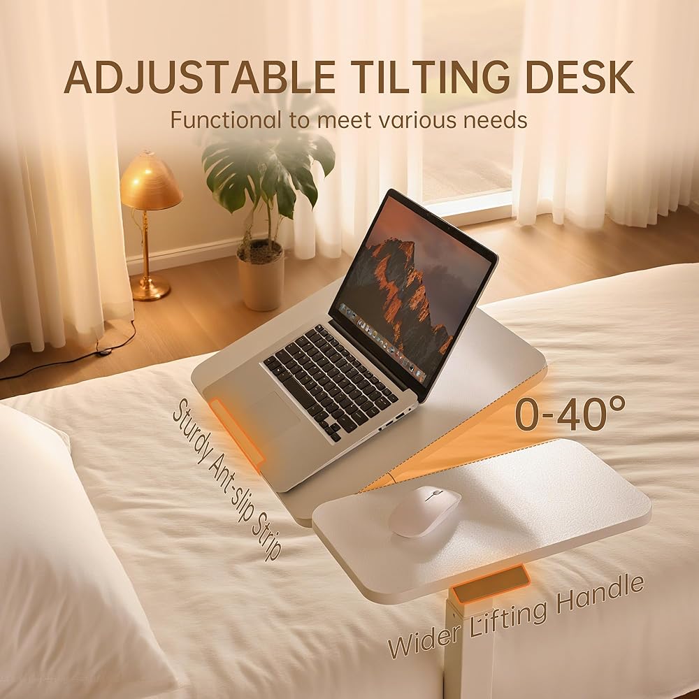 POWER LIFT SYSTEM: The over bed table can be adjusted from 25.4" to 40" with the ultra-smooth power lift mechanism, achieving the ideal working height with just a simple squeeze of paddle. No messed cords, no need worry about out of power