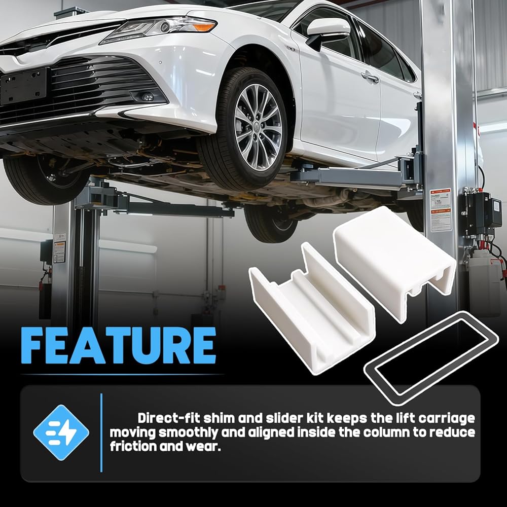 • Over time, original shim and slider blocks wear, leading to looseness, scraping, misalignment, or binding; this may cause uneven lift height, extra noise, and faster wear. Replacing our quality shim and slider kit helps address these issues by promoting smooth, square carriage travel, stable alignment, and reduced noise and wear