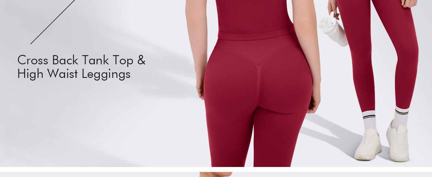 Complete Confidence in Motion: Train harder with unwavering support and comfort. This premium workout outfit for women combines the stability of the crossover back top with the secure, sculpting high waist leggings – your essential set for focused gym time, empowering yoga, or effective Pilates.