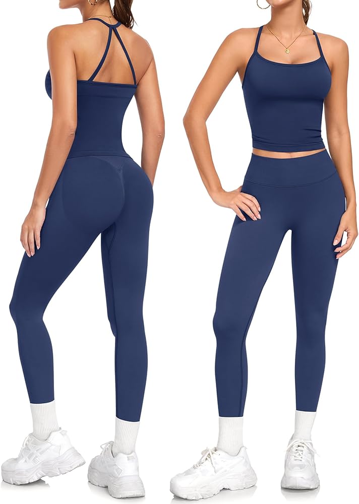 Stylish & Secure Halter Design: Stay confidently supported during intense workouts with our fashionable athletic sets for women. Movable pads convenient to adjust, replace or wash. The flattering halter neck and secure crisscross back ensure full coverage and prevent slipping, whether lifting weights or flowing through yoga poses.