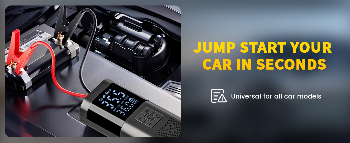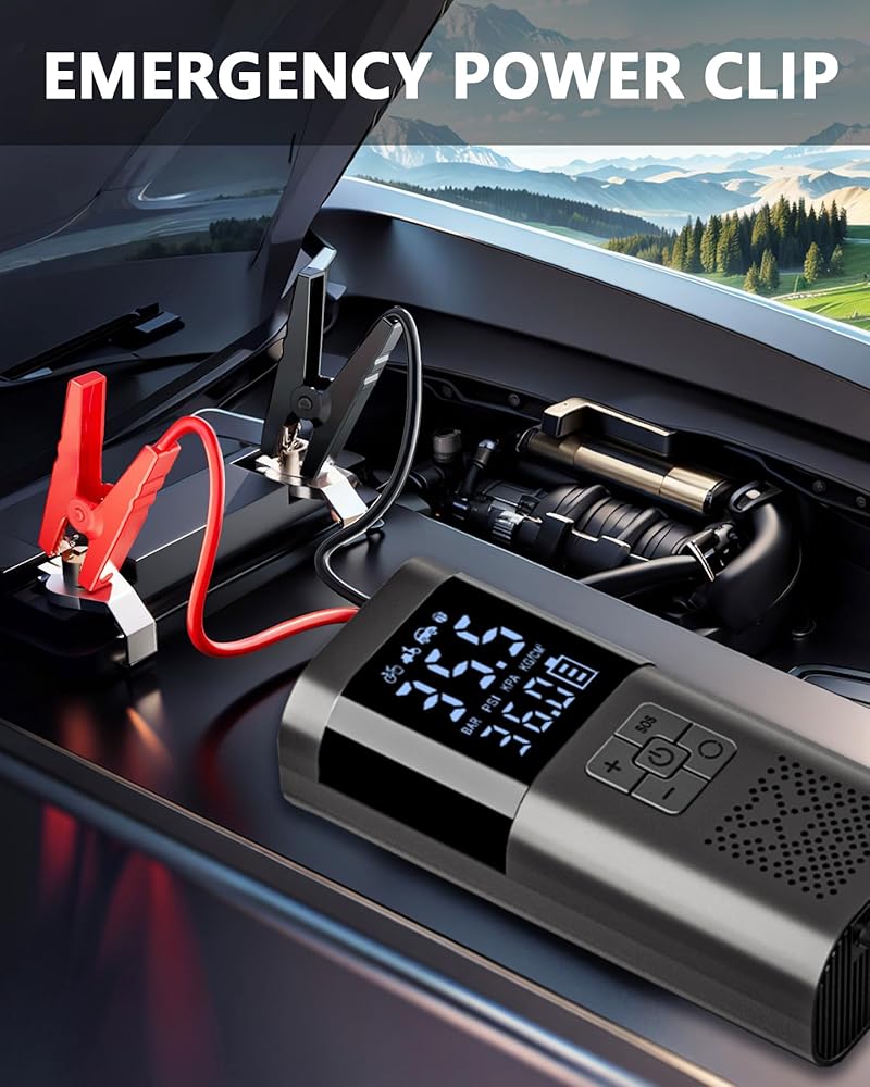 صندوق القفز لبطارية السيارة مع شاشة ذكية: يأتي صندوق القفز لبطارية السيارة هذا مزودًا بشاشة رقمية ساطعة وتقنية كابلات التوصيل الذكية البديهية. اختر من بين 5 أوضاع محددة مسبقًا بما في ذلك كرة الدراجة النارية للسيارة وإعداد الضغط المخصص.