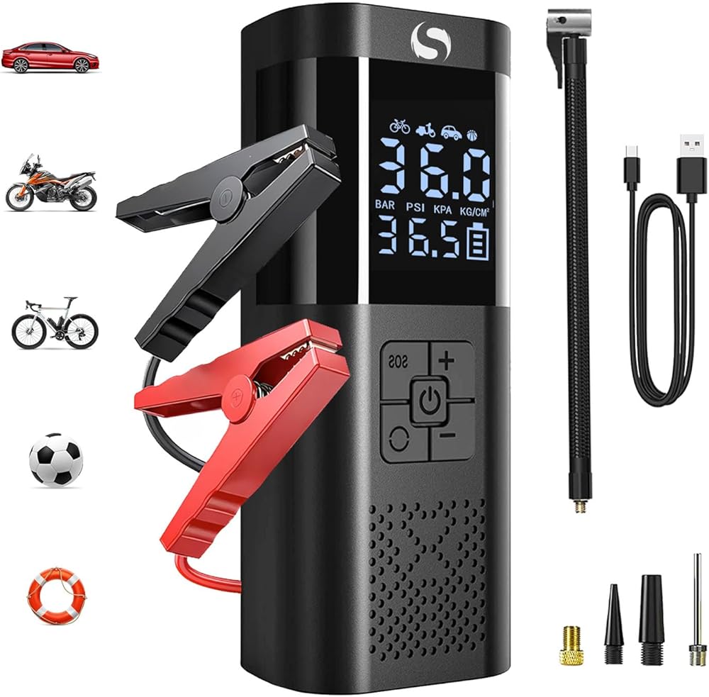 مجموعة قوية من مشغل القفز وضاغط الهواء: يوفر جهاز تشغيل القفز المحمول الكل في واحد تيارًا يصل إلى 4000 أمبير لبدء تشغيل المركبات 12 فولت بما في ذلك شاحنات السيارات وسيارات الدفع الرباعي دون عناء.