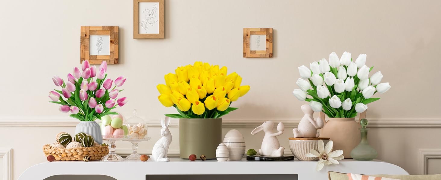 لمسة حقيقية من التيوليب الصناعي: زهور التيوليب الصناعية ذات الملمس الحقيقي، جذع التيوليب الاصطناعي يحاكي نسيج بتلات التيوليب الطبيعي، مما يجعل زهرة التيوليب المزيفة تبدو وكأنها حقيقية. من المؤكد أن أناقة ورق التوليب البسيطة ستساهم في تجميل يومك الكبير. اللمسة الحقيقية لزهرة التوليب الصناعية هي هدية رائعة لصديقك الذي يعاني من حساسية تجاه حبوب اللقاح.