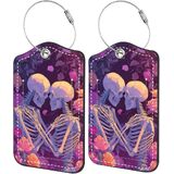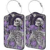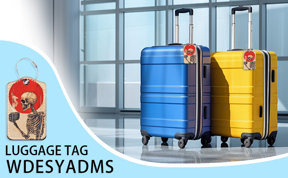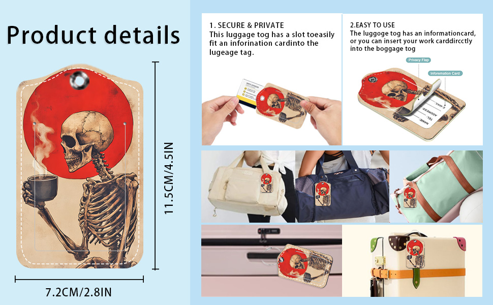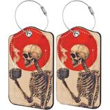 2 حزمة من علامات الأمتعة لحقائب السفر، تصميم فن القهوة الهيكلي، معرف حقيبة السفر القوطية مع ملصقات تعريف الأمتعة ذات الشريط المعدني لحمل حقيبة الأمتعة التي تم فحصها in Kuwait