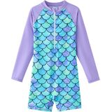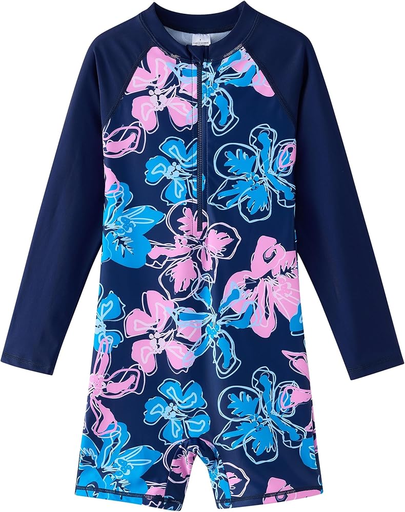 الحماية القصوى من الشمس (UPF 50+): توفر ملابس السباحة للفتيات هذه حماية ممتازة من الأشعة فوق البنفسجية بفضل أكمامها الطويلة وتصميمها العالي الرقبة، مما يوفر تغطية معتدلة ودفاعًا معززًا أثناء الأنشطة المائية الخارجية.
