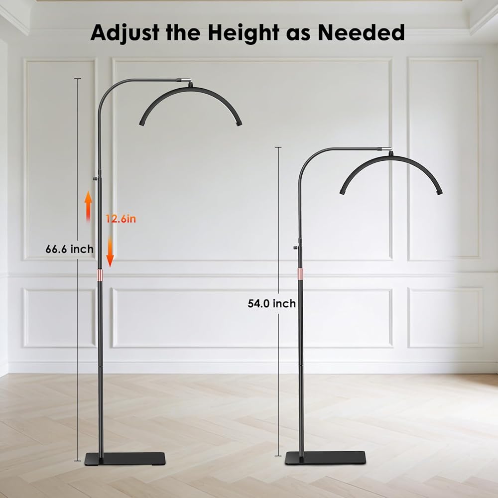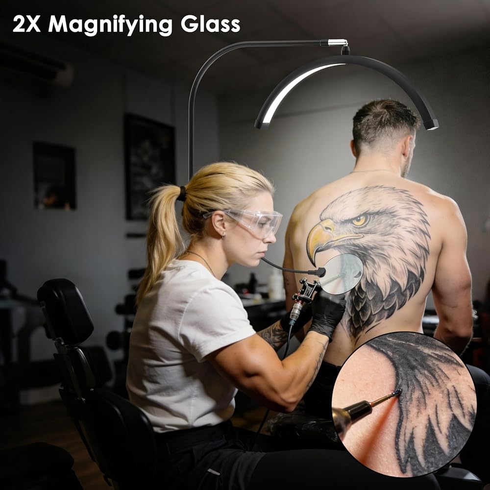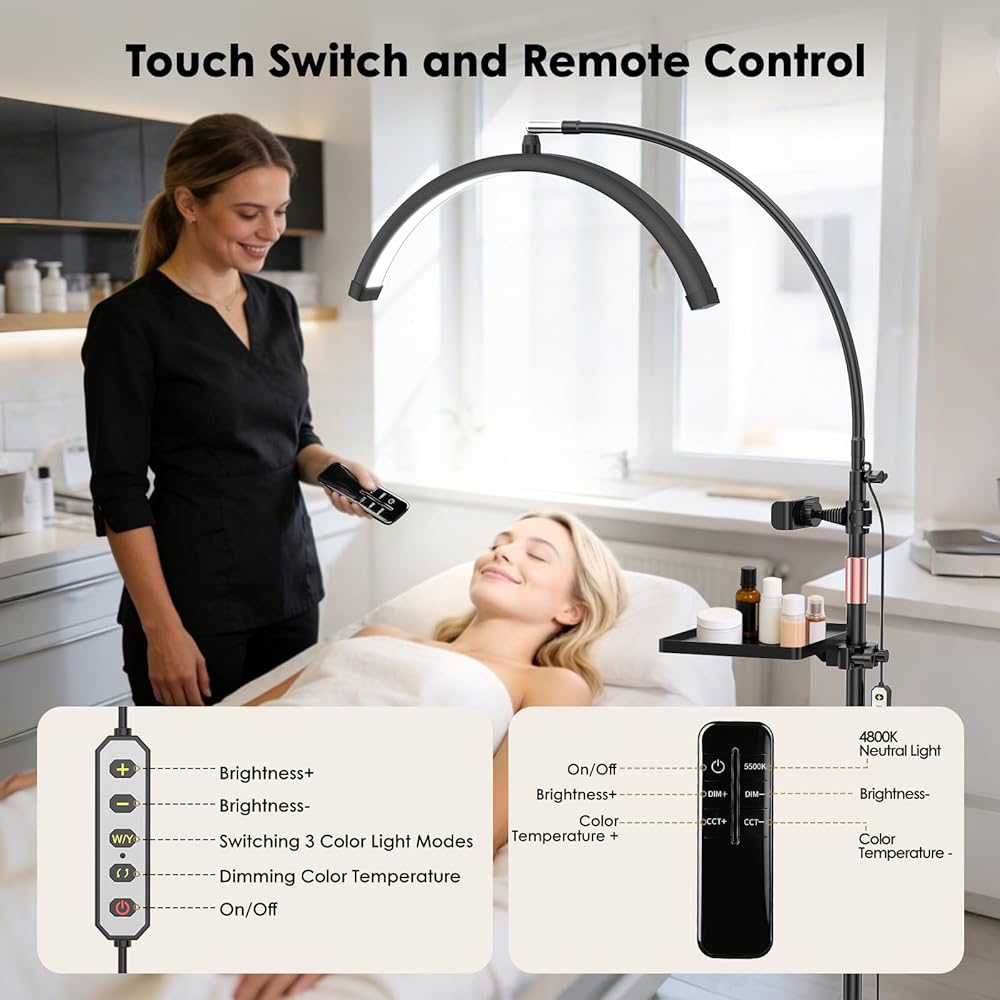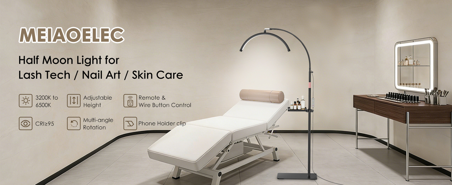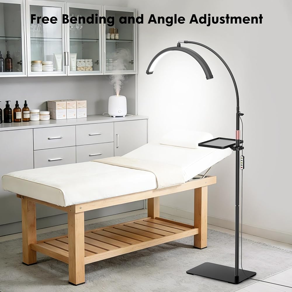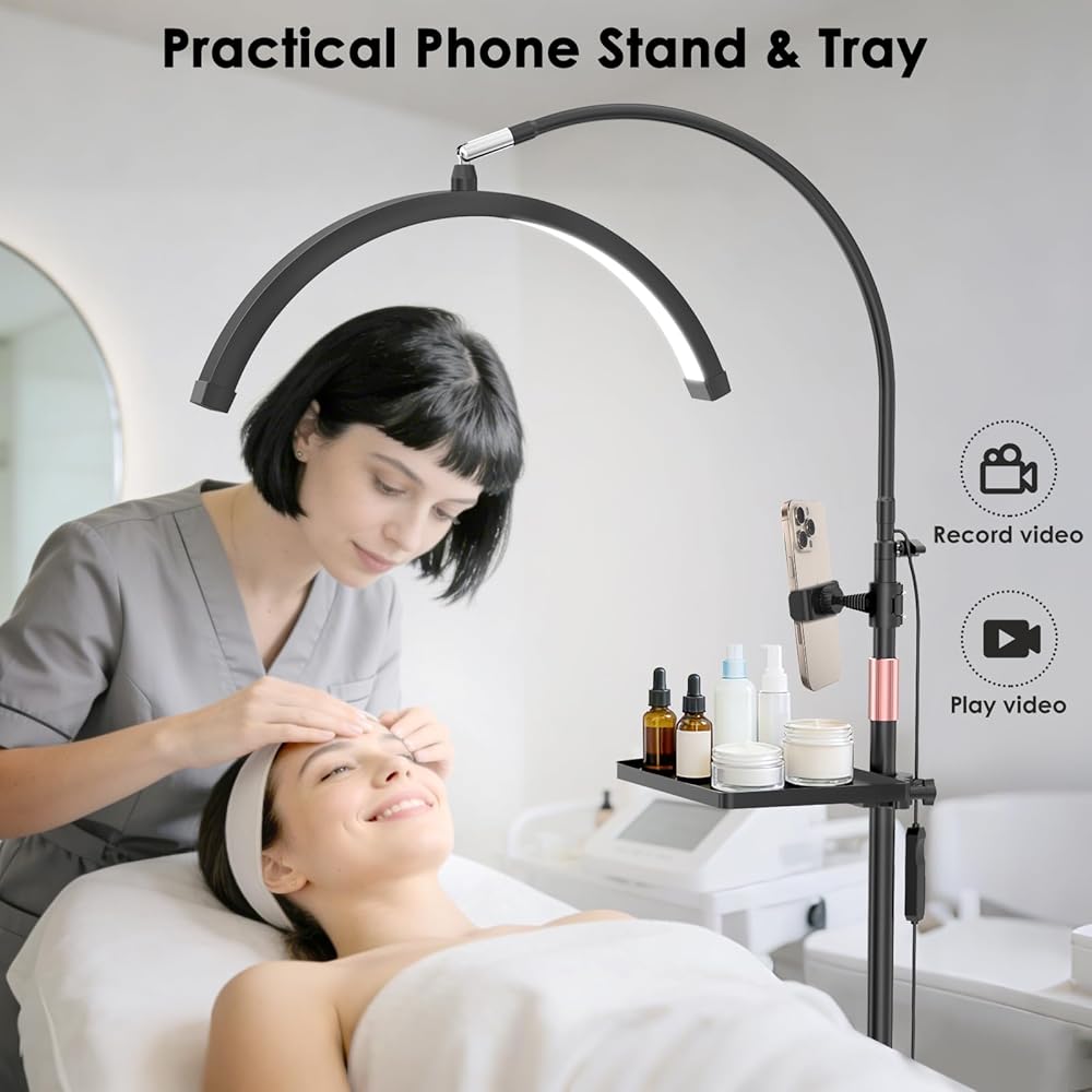 ضوء الرموش لتمديد الرموش، ضوء نصف القمر مع صينية الأدوات، مكبر 2X، حامل هاتف لفن الأظافر، فن الوشم، العناية بالبشرة، مصباح تجميلي للأرضية مع تعديل اللون والسطوع