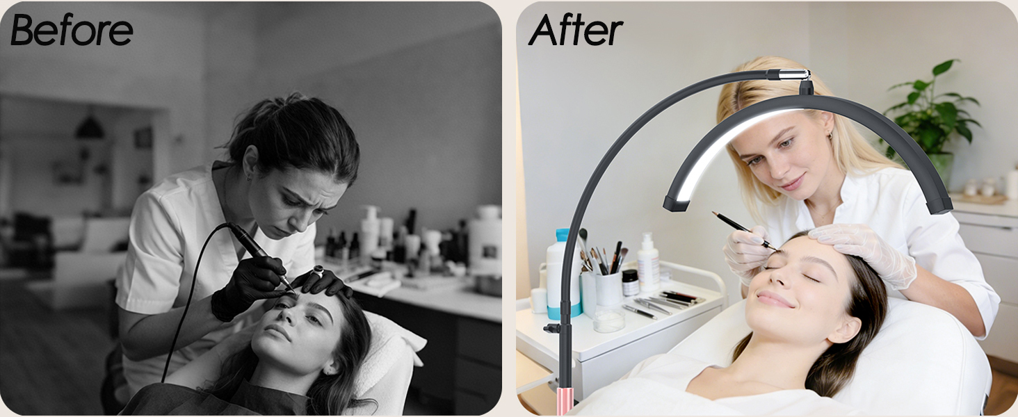 • 𝗠𝘂𝗹𝘁𝗶𝗽𝗹𝗲 𝗟𝗶𝗴𝗵𝘁 𝗦𝗰𝗲𝗻𝗮𝗿𝗶𝗼𝘀 -- مصابيح LED ممتازة 192 لا تحتوي على ظل أو وهج من الضوء، ضوء نصف القمر لدينا واسع كافية وتوفر إضاءة خالية من الظل. تصميم احترافي للعناية بالبشرة والرموش وفن الأظافر والمنتجعات الصحية والمكياج واستوديو الوشم وصالونات التجميل.