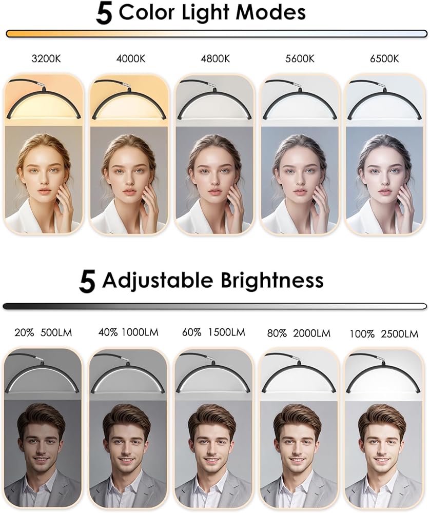 • 𝟱 𝗖𝗼𝗹𝗼𝗿 & 𝗕𝗿𝗶𝗴𝗵𝘁𝗻𝗲𝘀𝘀 𝗦𝗲𝘁𝘁𝗶𝗻𝗴𝘀 -- 5 إعدادات ألوان لدرجة الحرارة: 6500 كلفن - 5600 كيلو - 4800 كيلو - 4000 كيلو - 3200 كيلو؛ 5 إعدادات للسطوع: 100%، 2500 لومن؛ 80%، 2000LM؛ 60%، 1500LM؛ 40%، 1000LM؛ 20%، 500 لومن، من دافئ إلى بارد، ناعم إلى فائق السطوع، مما يساعدك على رؤية كل التفاصيل الصغيرة المفقودة.