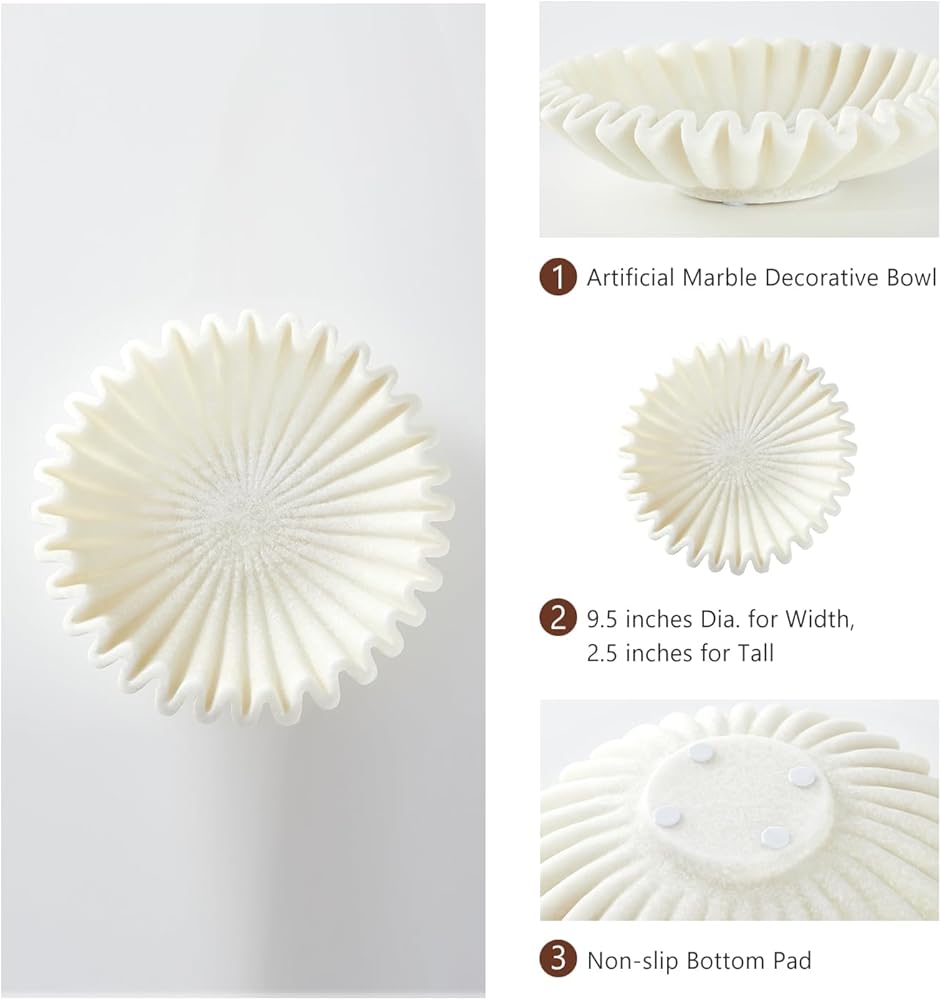 【Handmade Artificial Marble Bowl】: This decorative bowl is crafted from artificial marble and meticulously hand-finished, making it a stylish home accent piece.
