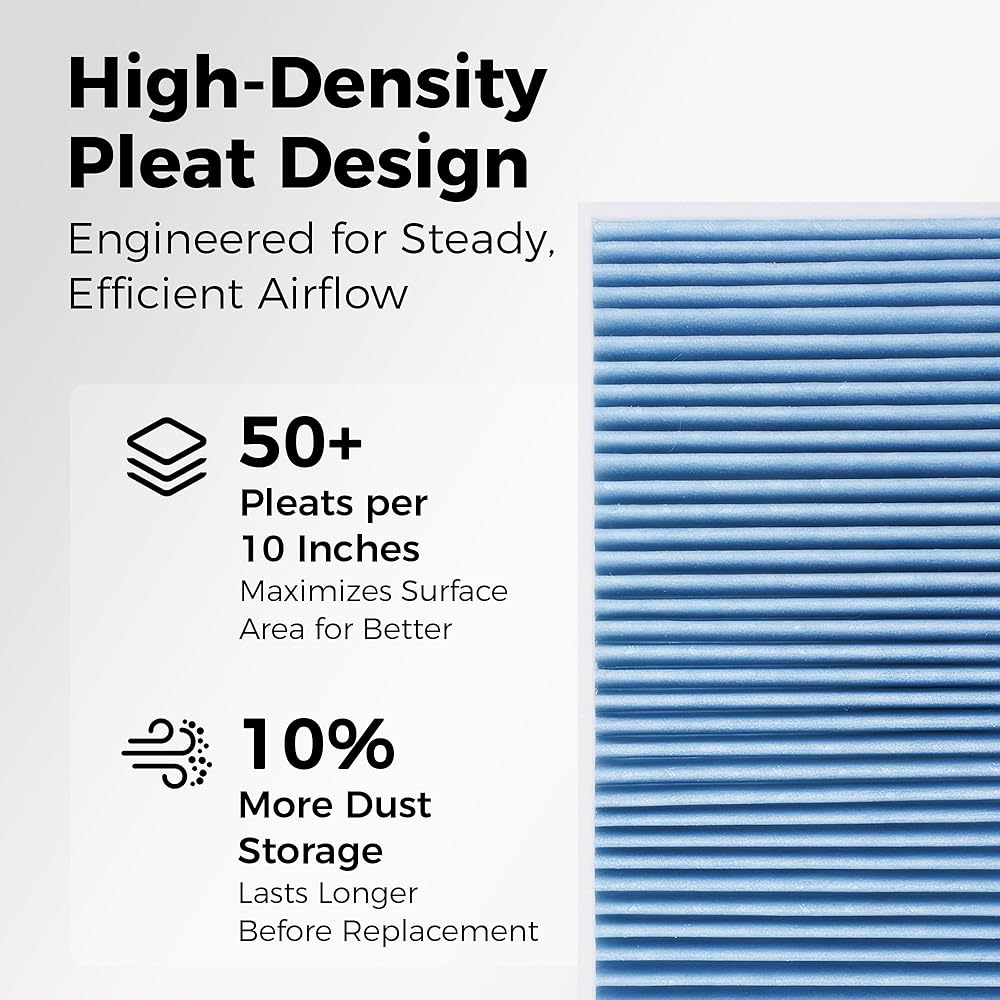 【Advanced Multi-Layer Filtration】 Designed with a triple-layer structure: a primary layer blocks larger dust,a grade layer filters out fine airborne impurities,and an activated carbon layer neutralizes odors and gases.This ensures your cabin stays fresh and healthy.
