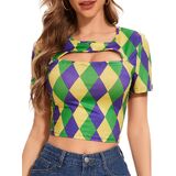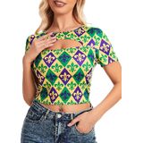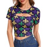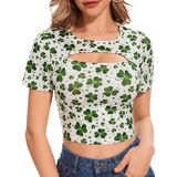 - المزايا: مجوف للخارج، يُغلق. تي شيرت قصير مثير بأكمام قصيرة.