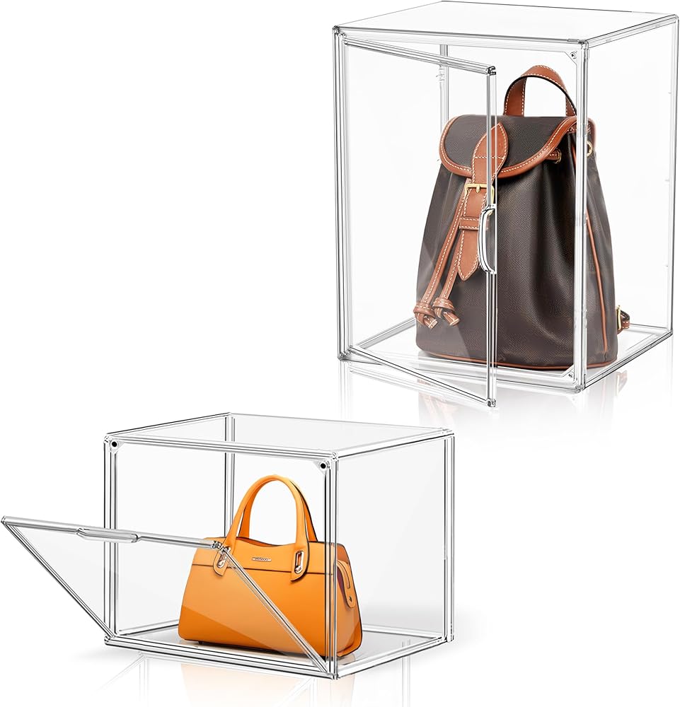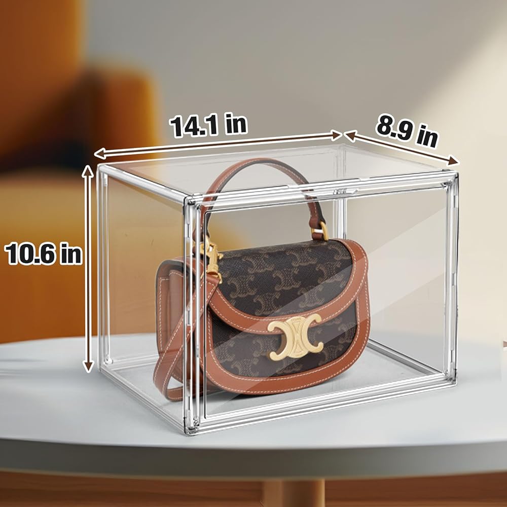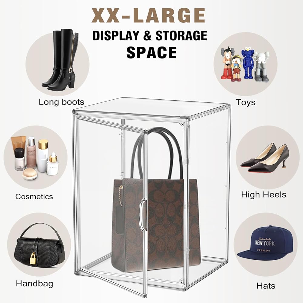 Our clear handbag box allows you to display your collections in a sleek and protective case, ensuring they are beautifully presented and easily visible to guests. Make a statement with your organized and stunning display