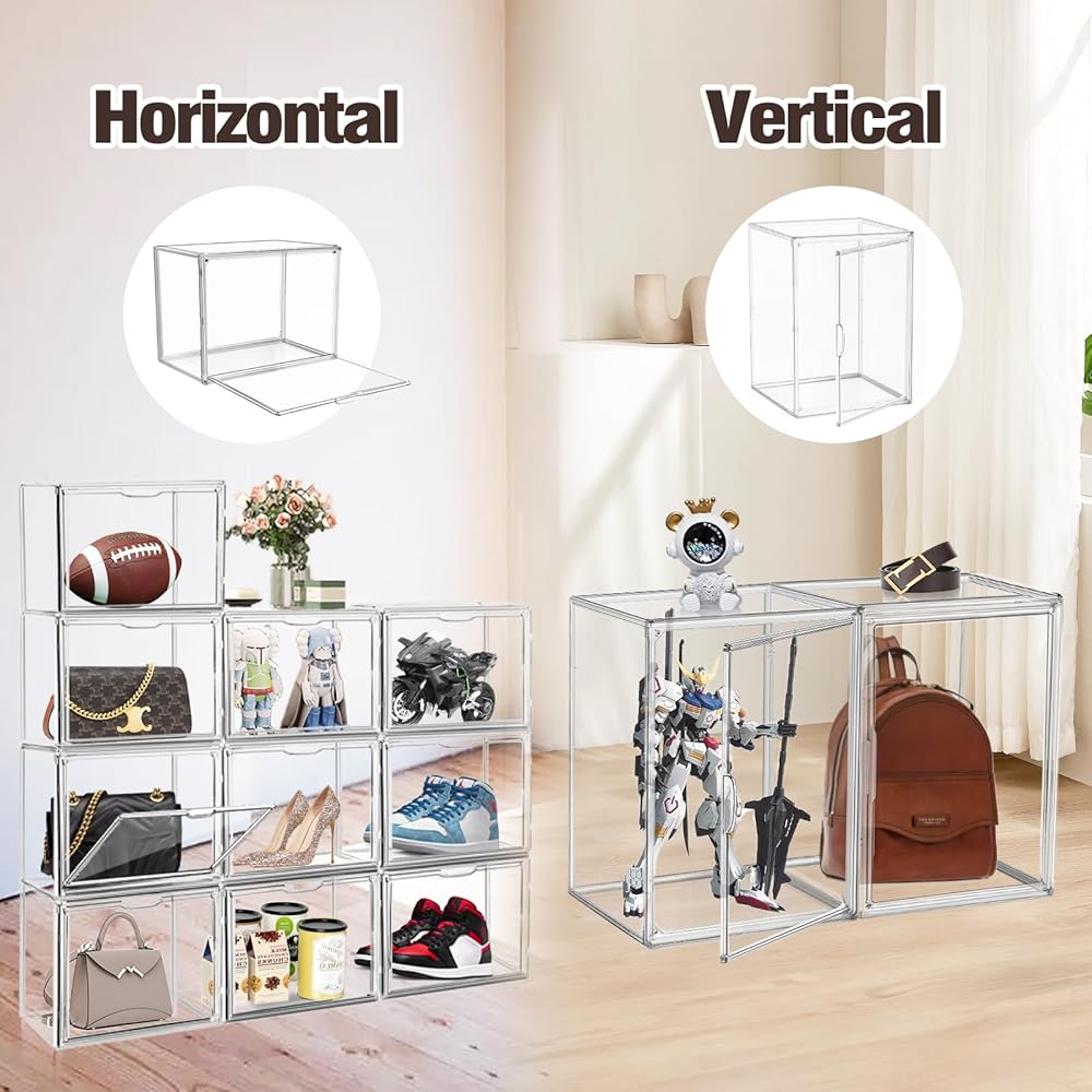 3 sizes of transparent storage boxes are available to accommodate different sizes of backpacks, handbags, shoes, boots, collections, etc. Surprise your loved ones with this unique and practical gift that is perfect for showcasing a variety of collectibles. Ideal for action figures, toys, electronics, cosmetics, scarves, caps, and more. It's a thoughtful present for friends with a passion for collecting
