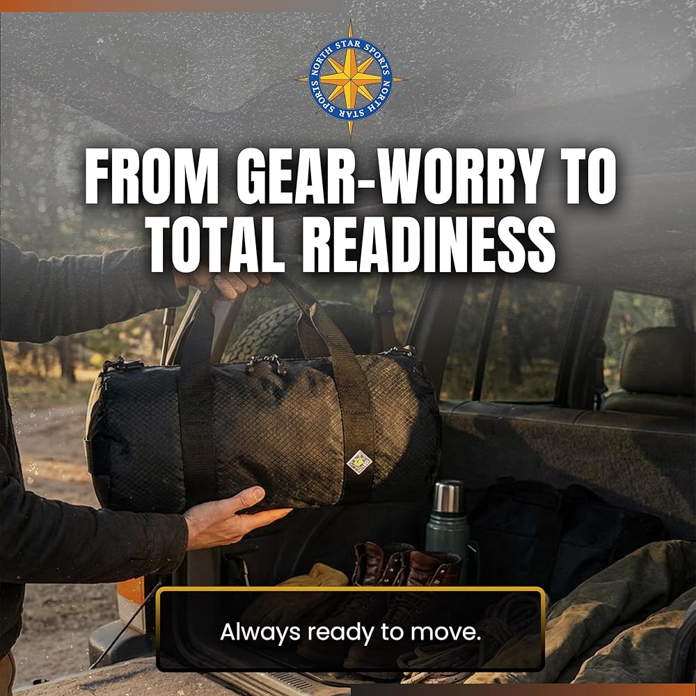 COMPACT YET SPACIOUS: Measuring 12" x 24", (44 Liter), this big travel bag is compact yet spacious enough for your essentials. Whether you need a gym bag, outdoor Weatherproof duffel bag for men or a camping bag, its large capacity ensures easy transport without compromising storage.