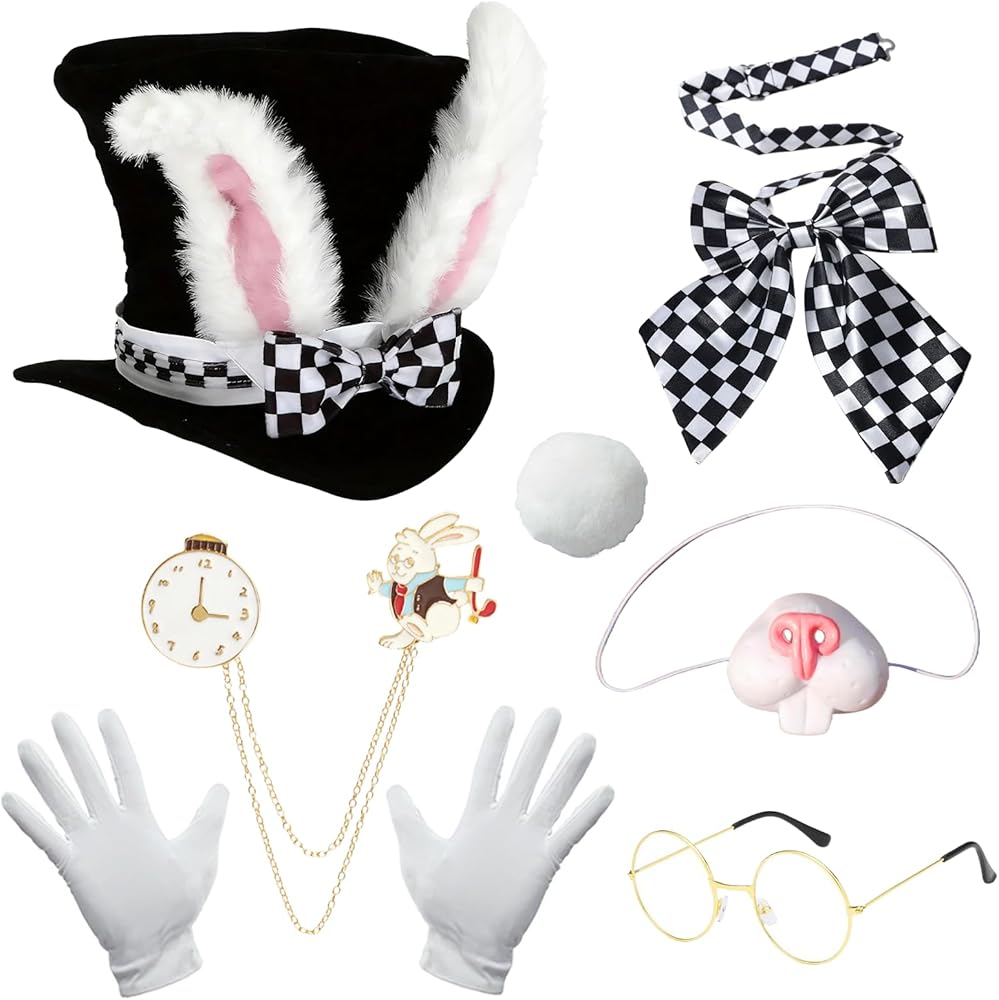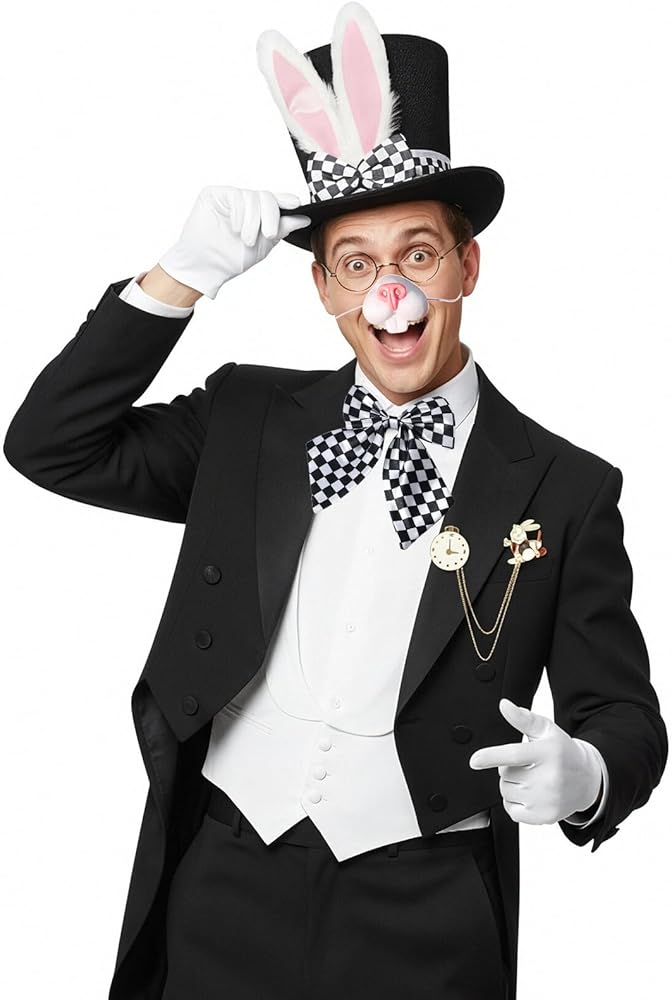 2. This Easter bunny costume is tailored to fit most adults perfectly—no slipping or tightness. The top hat measures approximately 10.2 x 7.9 x 2.4 inches, the bow tie adjusts to your neck size, and the lightweight glasses complement any face shape. The nose and tail are a breeze to attach, so you can be fully dressed in seconds and ready to shine without any fussy adjustments.