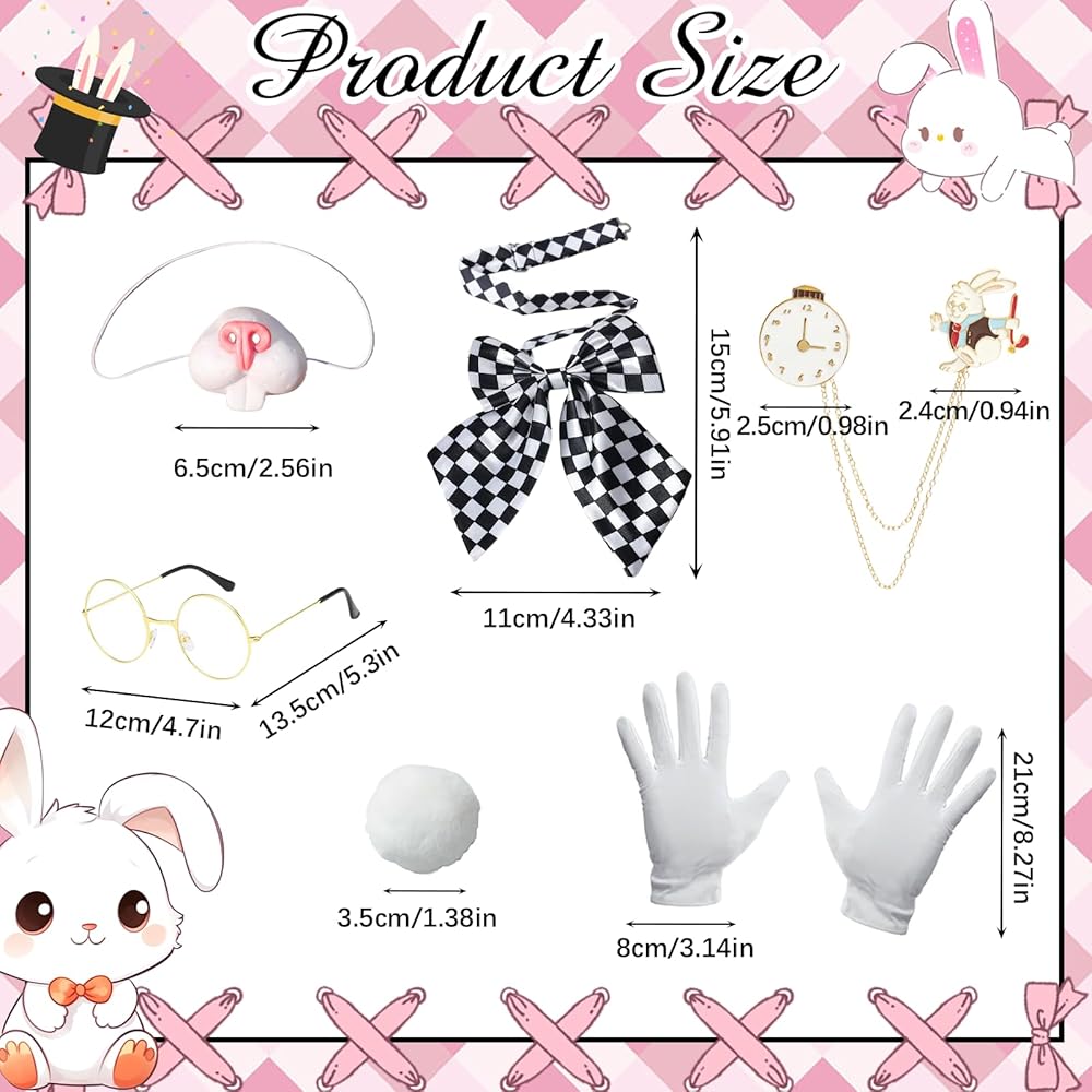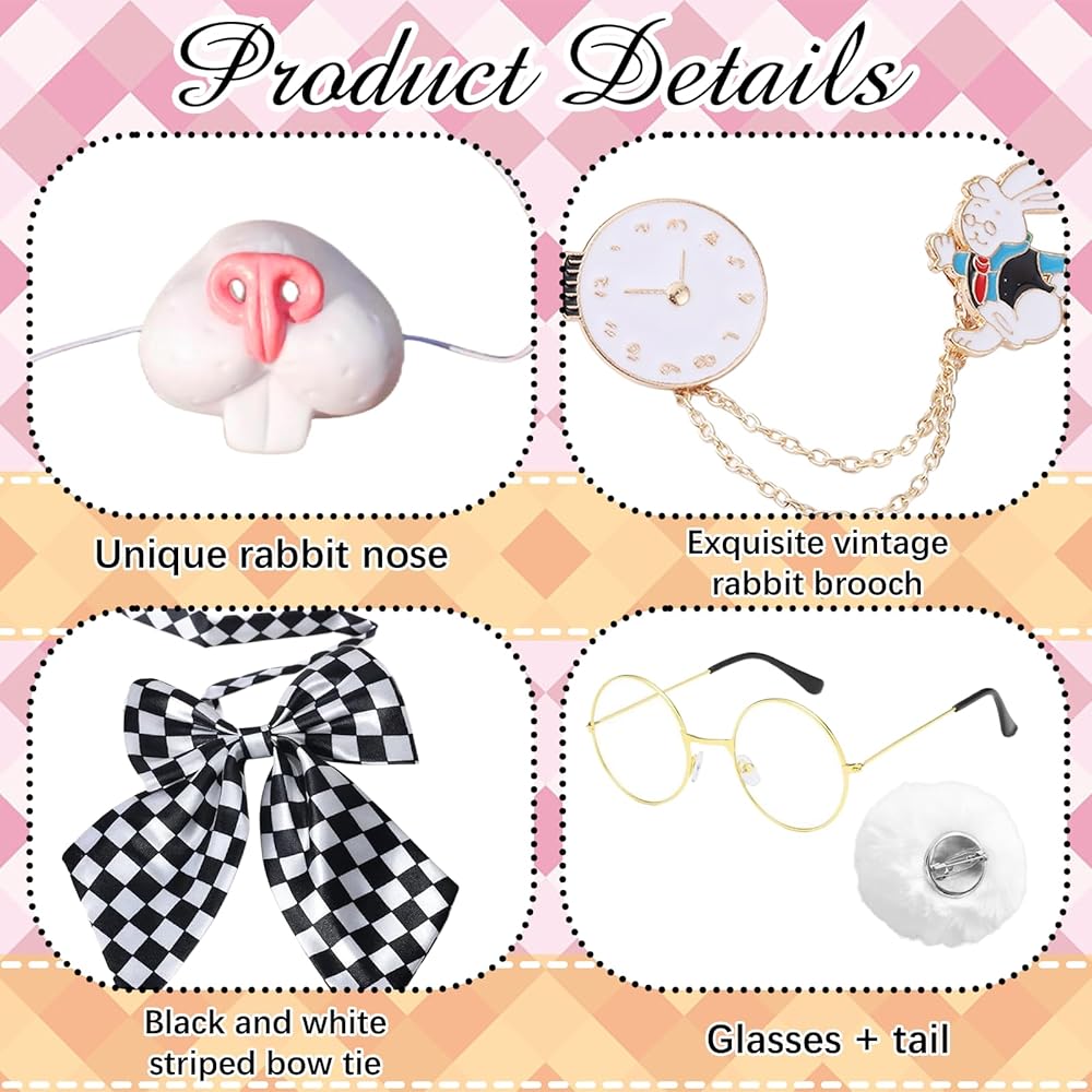 3. While this white rabbit costume is a showstopper at Easter parties and tea parties, its unique details make it memorable for any occasion. The lifelike 3D bunny nose is comfortable to wear, and the playful clock-shaped brooch adds a dash of intrigue and whimsy. Whether you're striking a pose or hopping around, these accessories bring your character to life with personality and flair.