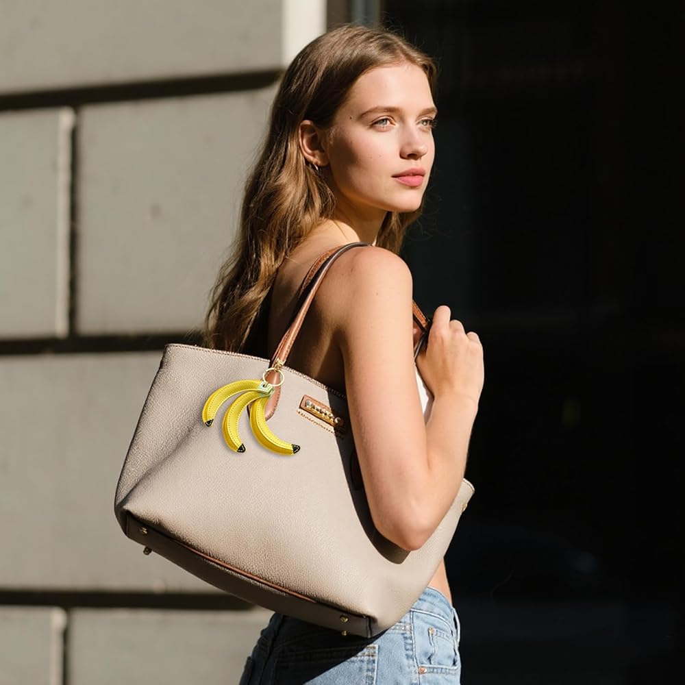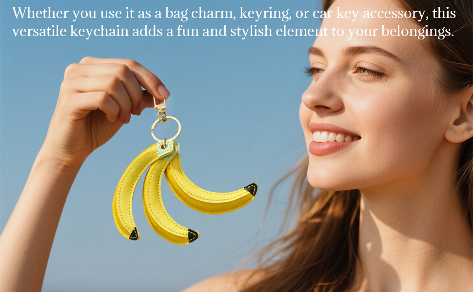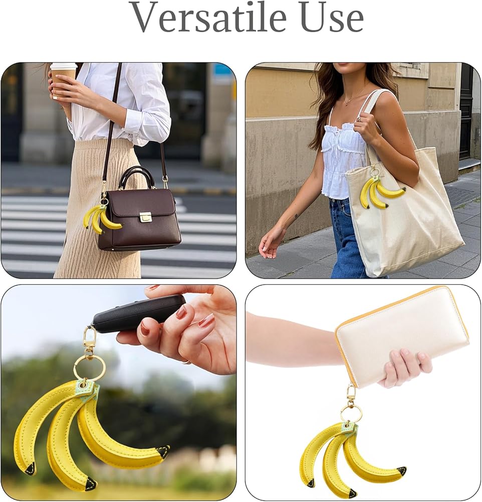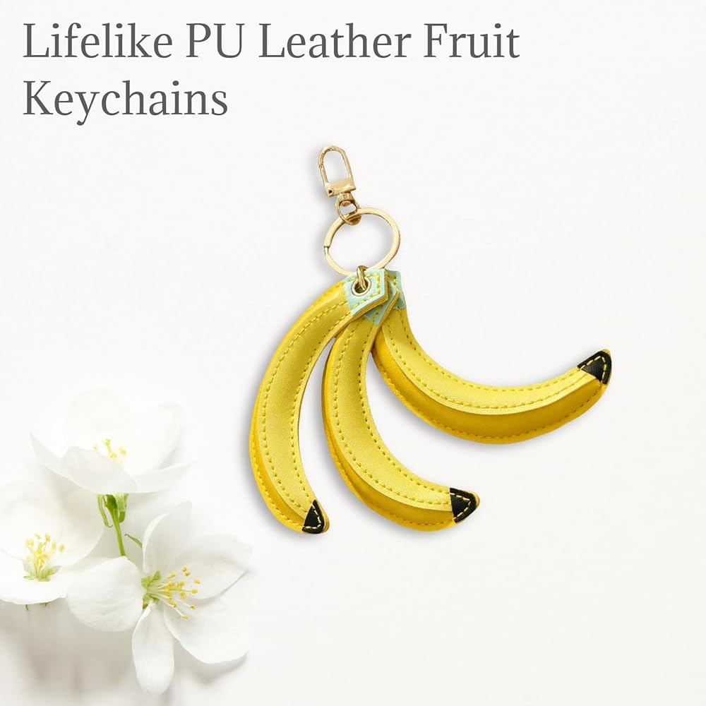 تصميم نابض بالحياة: تتميز كل سلسلة مفاتيح بثلاث حليات موزة مصنوعة بشكل فردي، مصممة لتبدو مثل الموز الحقيقي، مما يضيف لمسة من السحر الطبيعي إلى إكسسواراتك.