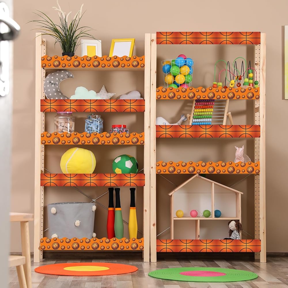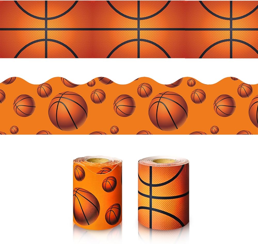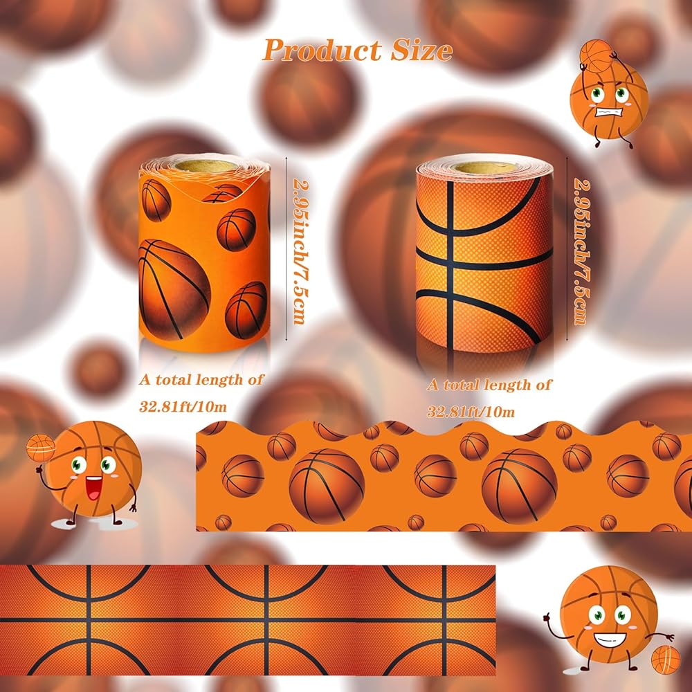Basketball Pattern: These two rolls of bulletin board borders are perfect for decorating your classroom, office, or home. Each roll measures 32.8 x 0.25 feet. The adorable basketball pattern paired with basketball texture creates a vibrant and fun atmosphere that can inspire students' creativity!