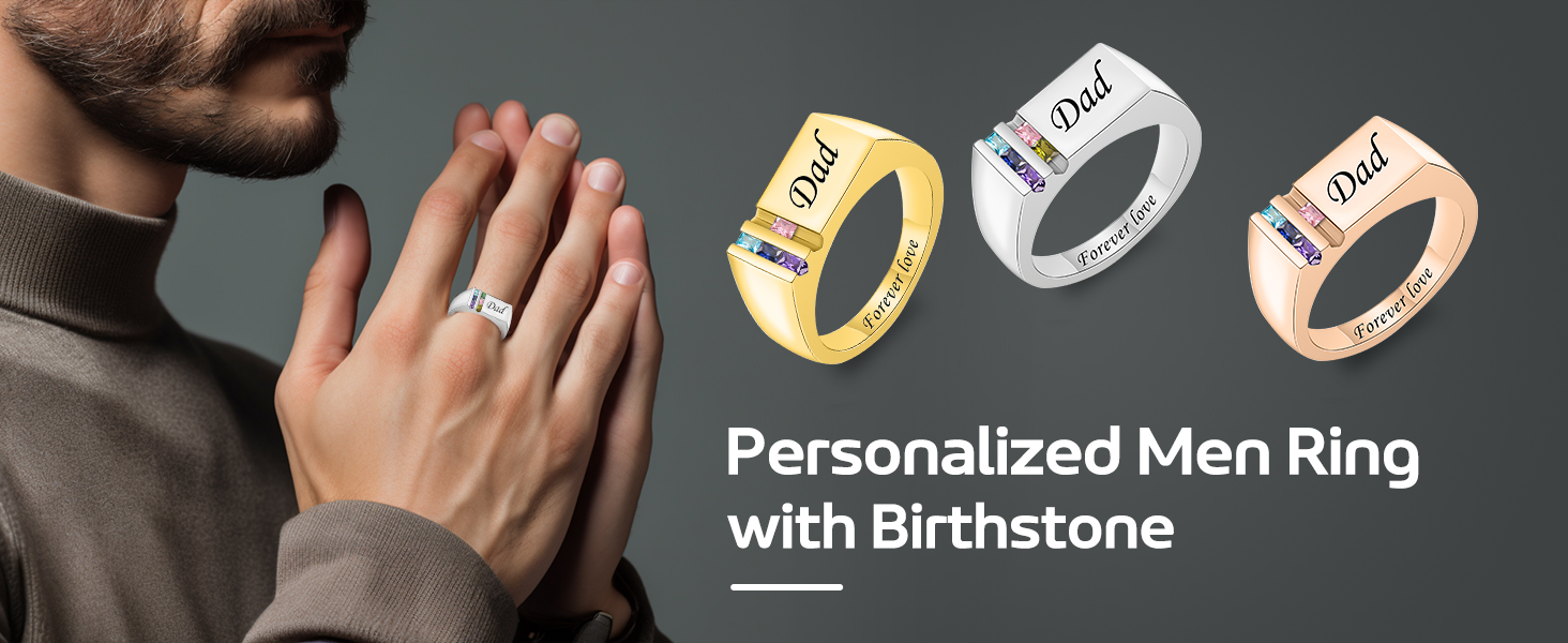 【 Customized Dad Ring 】This custom men ring express your invisible love and companionship for them, giving them a personalized gift is a romantic way to show your love.This personalized rings for dad can be customized with up to 8 birthstones. Free Engraving with names, words or special date to make it unique for you.