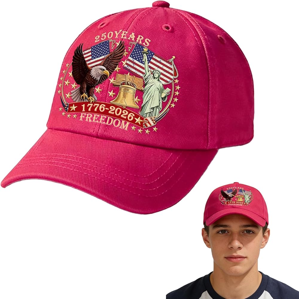 The 250-year journey of freedom is presented: With this exclusive 1776-2026 commemorative cap, we pay tribute to 2026 - Put on this hat and witness together the 250-year history of American independence. The American Spirit: It showcases the ingenious combination of the bald eagle, the Liberty Bell, and the Statue of Liberty - these iconic symbols bear witness to the country's unwavering spirit of freedom and enduring faith. Rich details and design: Unique embossing technology, which meticulously depicts every detail while being resistant to wear and fading. Suitable for anyone: Universal size and adjustable buckle. Whether it's men, women or children, and no matter when or where, they can wear it comfortably. A gift filled with patriotic sentiments: A heartfelt tribute to veterans, history enthusiasts, and loyal citizens. Presenting such a gift is a way to showcase the resilience of the United States over the past 250 years.