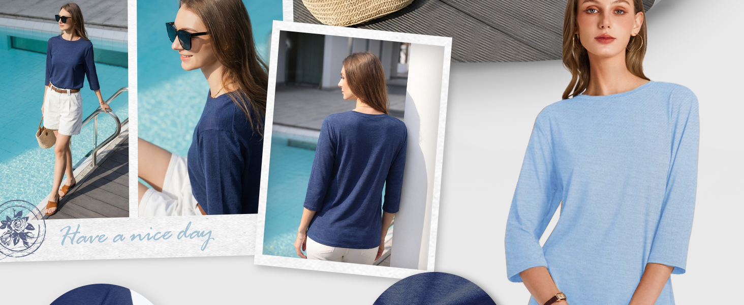 نسيج ناعم وجيد التهوية - قمصان GAYHAY النسائية بطول 3/4 كم مصنوعة من نسيج ناعم سحابي وخفيف الوزن يمنحك ملمسًا ناعمًا على بشرتك. لا يوجد التصاق أو تصلب - رائع للاستخدام في الربيع والخريف أو غرف التكييف، بدءًا من القهوة الصباحية وحتى الاسترخاء في المساء