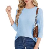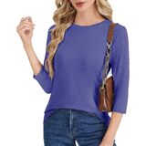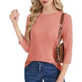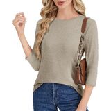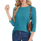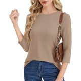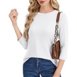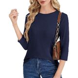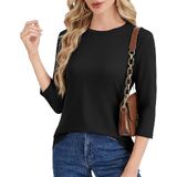 حل نقاط الألم في خزانة الملابس اليومية - توفر هذه القمصان ذات الأكمام 3/4 للنساء التغطية الصحيحة - "ليست ساخنة جدًا، وليست باردة جدًا". أكمام تنحيف، قصة فضفاضة تخفي الجزء الأوسط من جسمك، وياقة دائرية كاجوال تناسب جميع أنواع الجسم، مصممة لتجعلك تشعر بالثقة في كل مرة ترتديها