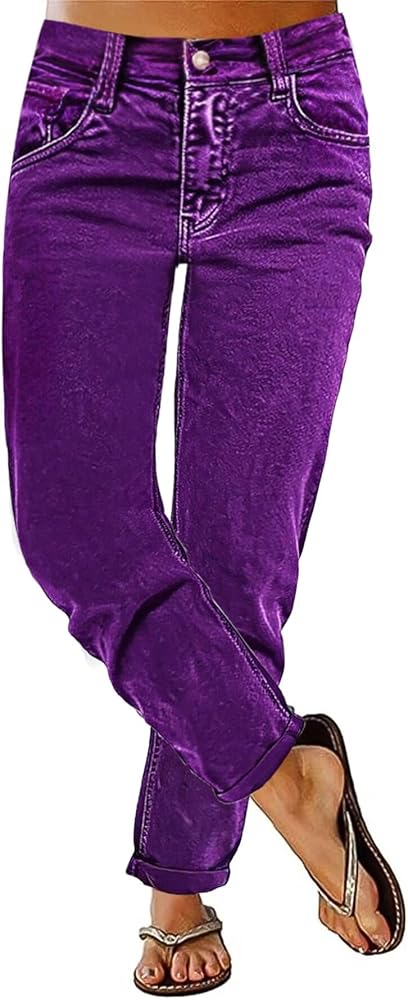 Features:straight leg,mid waist,crop,roll hem,stretchy.Discover modern comfort in these cropped straight jeans. A mid-waist fit, roll hem detail, and stretchy fabric combine for a stylish, creating a timeless silhouette for effortlessly cool, casual style.These pants will be your go-to choice for a stylish and comfortable look.