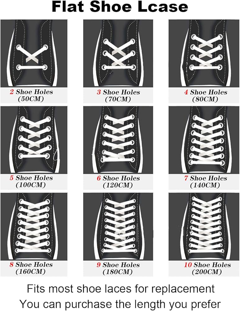 • نحن نقدم أربطة أحذية واسعة بأطوال مختلفة لتناسب أنماط الأحذية المختلفة، يمكنك اختيار طول الدانتيل بناءً على نوع حذائك، مع خيارات تشمل 100 سم (39 بوصة)، 110 سم (43 بوصة)، 120 سم (47 بوصة)، 130 سم (51 بوصة)، 140 سم (55 بوصة)