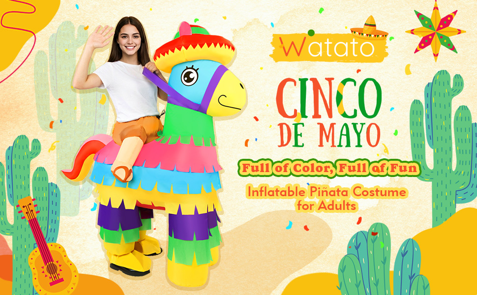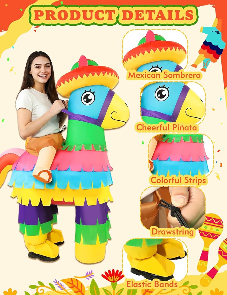 مادة البوليستر الفاخرة: مصنوع من البوليستر عالي الجودة، زي سينكو دي مايو بيناتا القابل للنفخ للبالغين متين وخفيف الوزن ومقاوم للماء ومقاوم للبهتان - مصمم لمواكبة كل لحظة من الاحتفال. التصميم الآمن والمحكم الغلق يحافظ على الهواء بشكل جميل، حتى تتمكن من الاحتفال والرقص والاحتفال لساعات دون الشعور بالثقل. ارتديه واستمتع بمهرجان مريح خالٍ من الهموم من البداية إلى النهاية مع هذا الزي المضحك القابل للنفخ