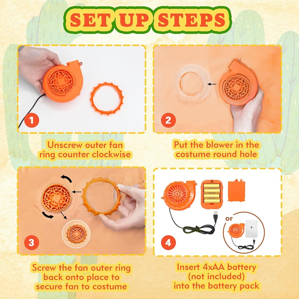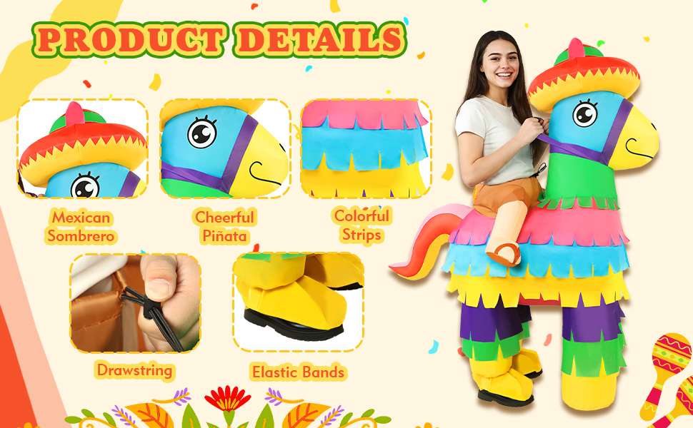 النفخ والتفريغ السريع: مدعومًا بمروحة مدمجة قوية، يتم نفخ هذا الزي المكسيكي للبالغين في ثوانٍ معدودة - سريع وسهل وجاهز دائمًا للمتعة! يحافظ تدفق الهواء الثابت على شكل البنياتا ممتلئًا وحيويًا طوال احتفالك. عندما تنتهي الحفلة، ما عليك سوى تفريغها من الهواء وتعبئتها في وقت قصير، لتكون جاهزة لمغامرتك القادمة